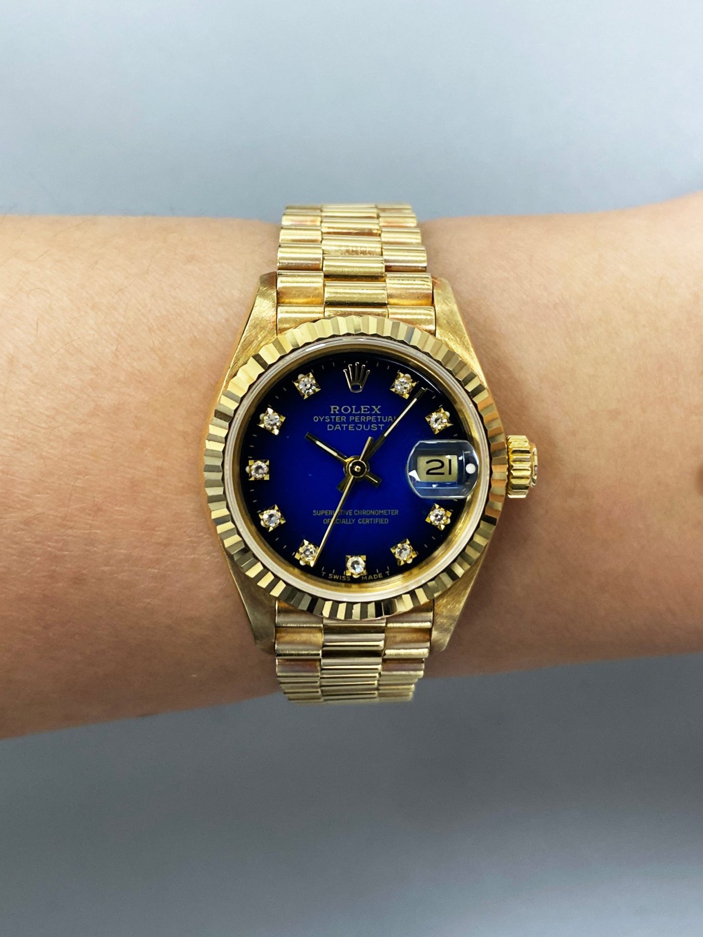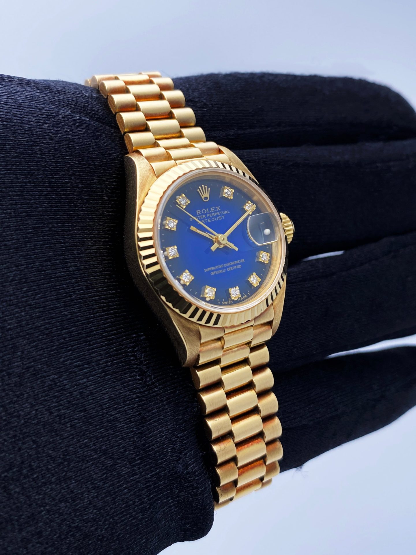 Rolex Datejust 69178 Blue Vignette Dial 18K Yellow Gold Ladies Watch