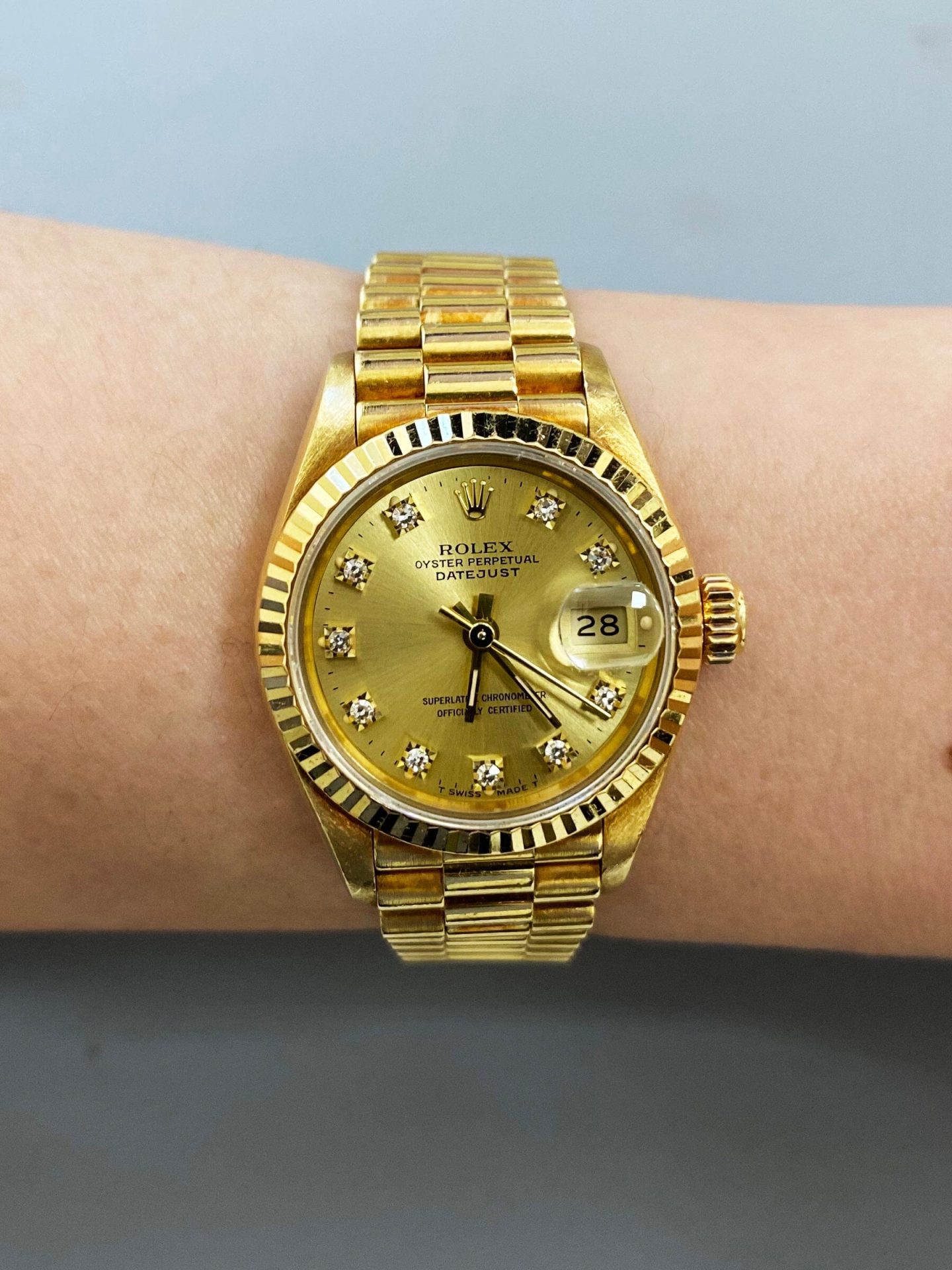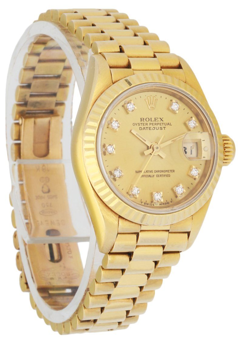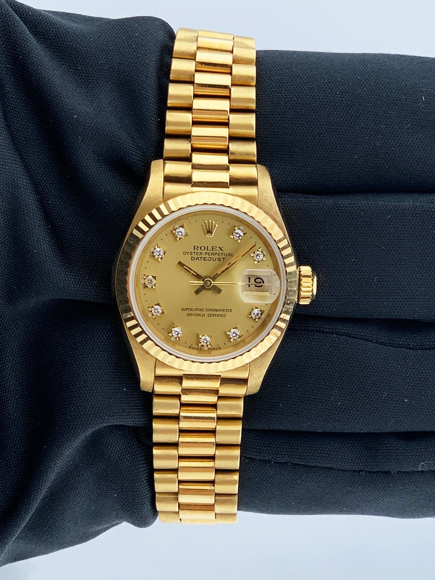 Rolex Datejust 69178 18K Yellow Gold Diamond Dial Ladies Watch With Papers