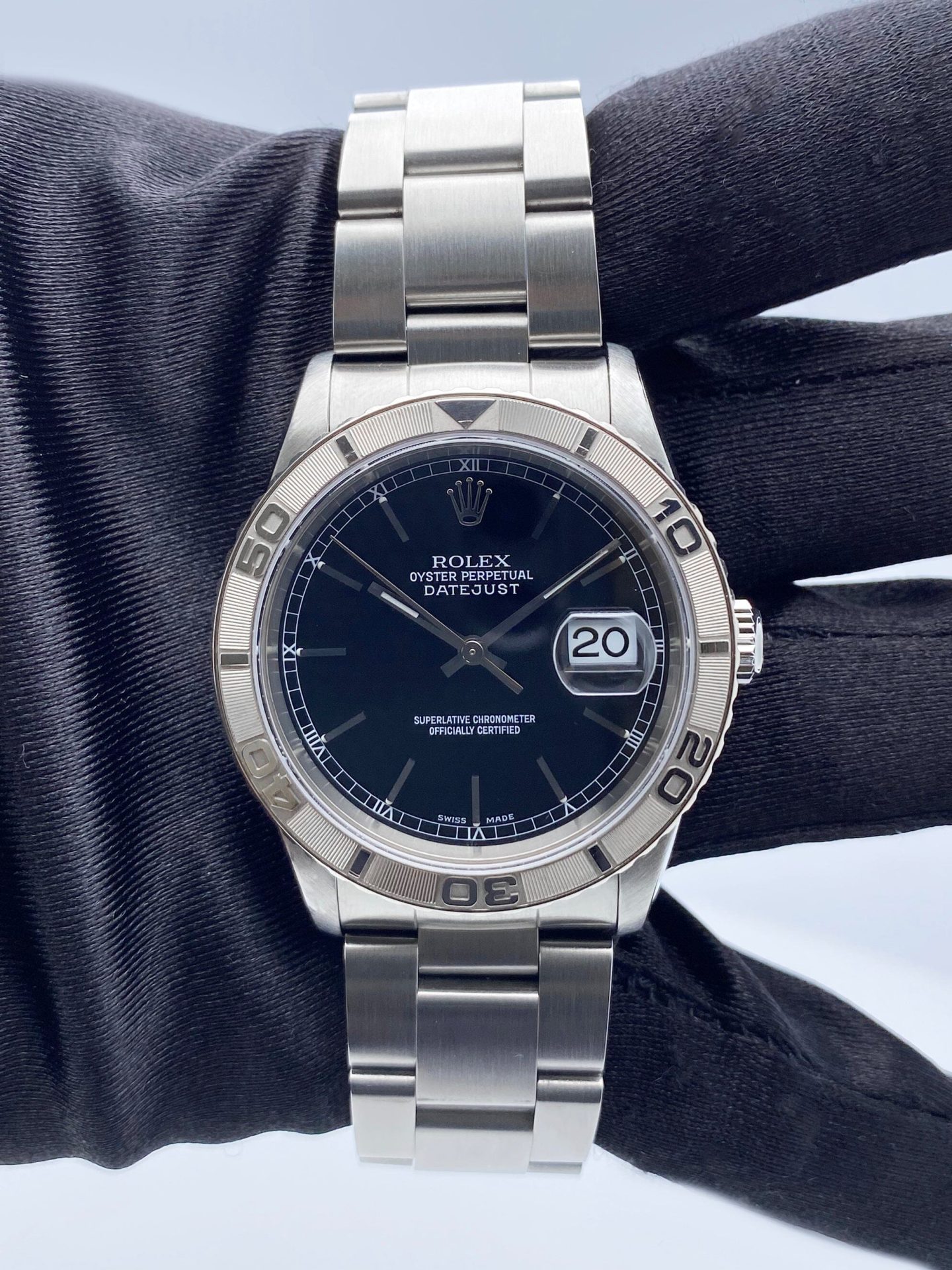 Rolex Oyster Datejust Turn-O-Graph 16264 Black Dial Mens Watch Box Papers