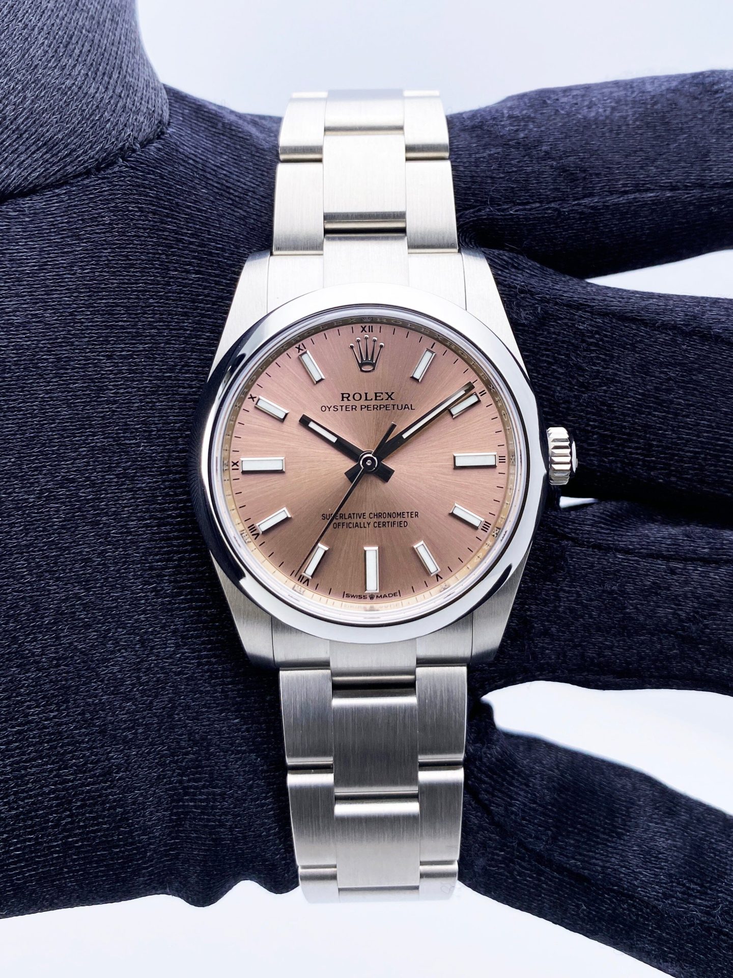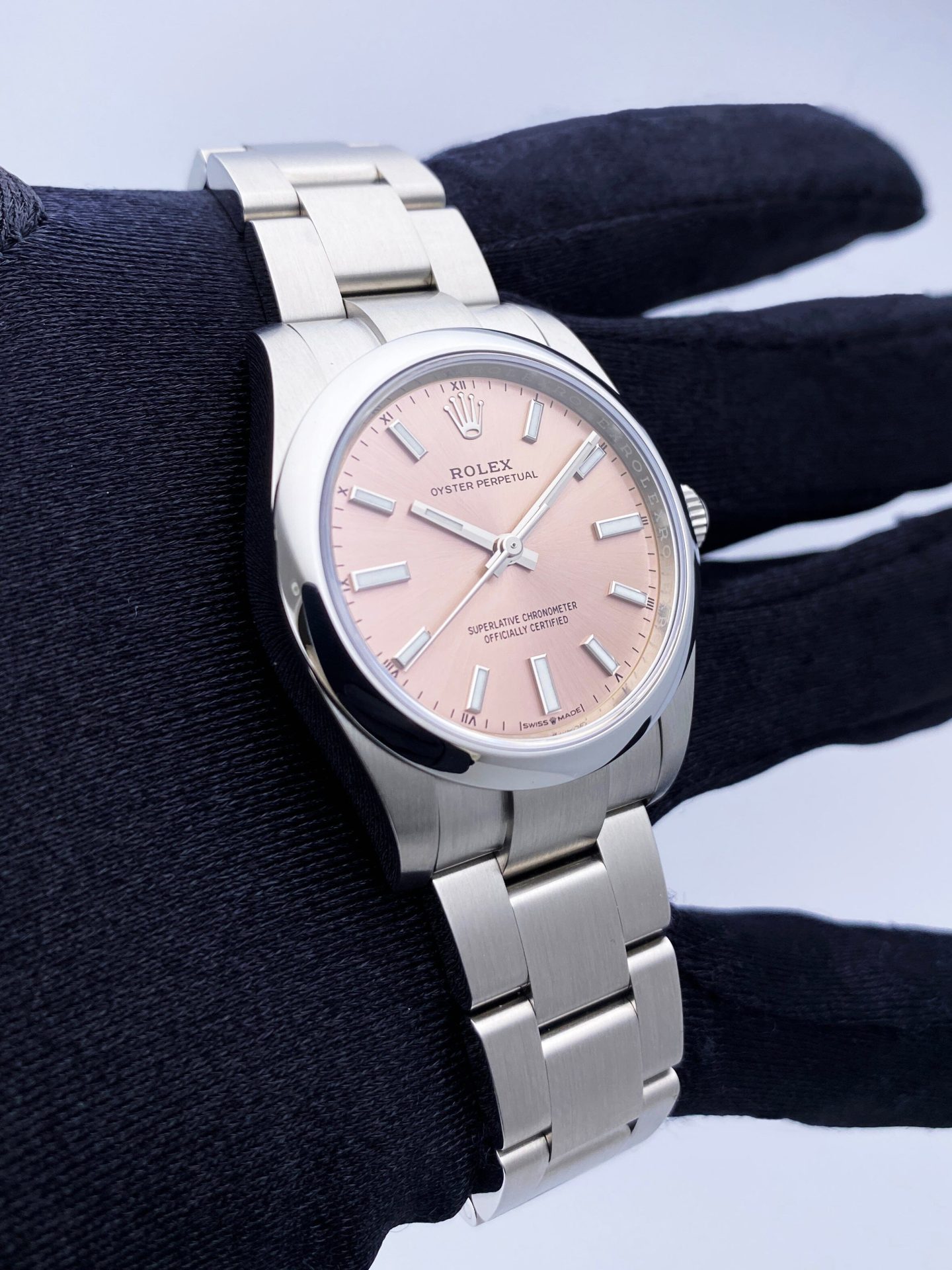 Rolex Oyster Perpetual 124200 Midsize Pink Dial Ladies Watch Box Papers