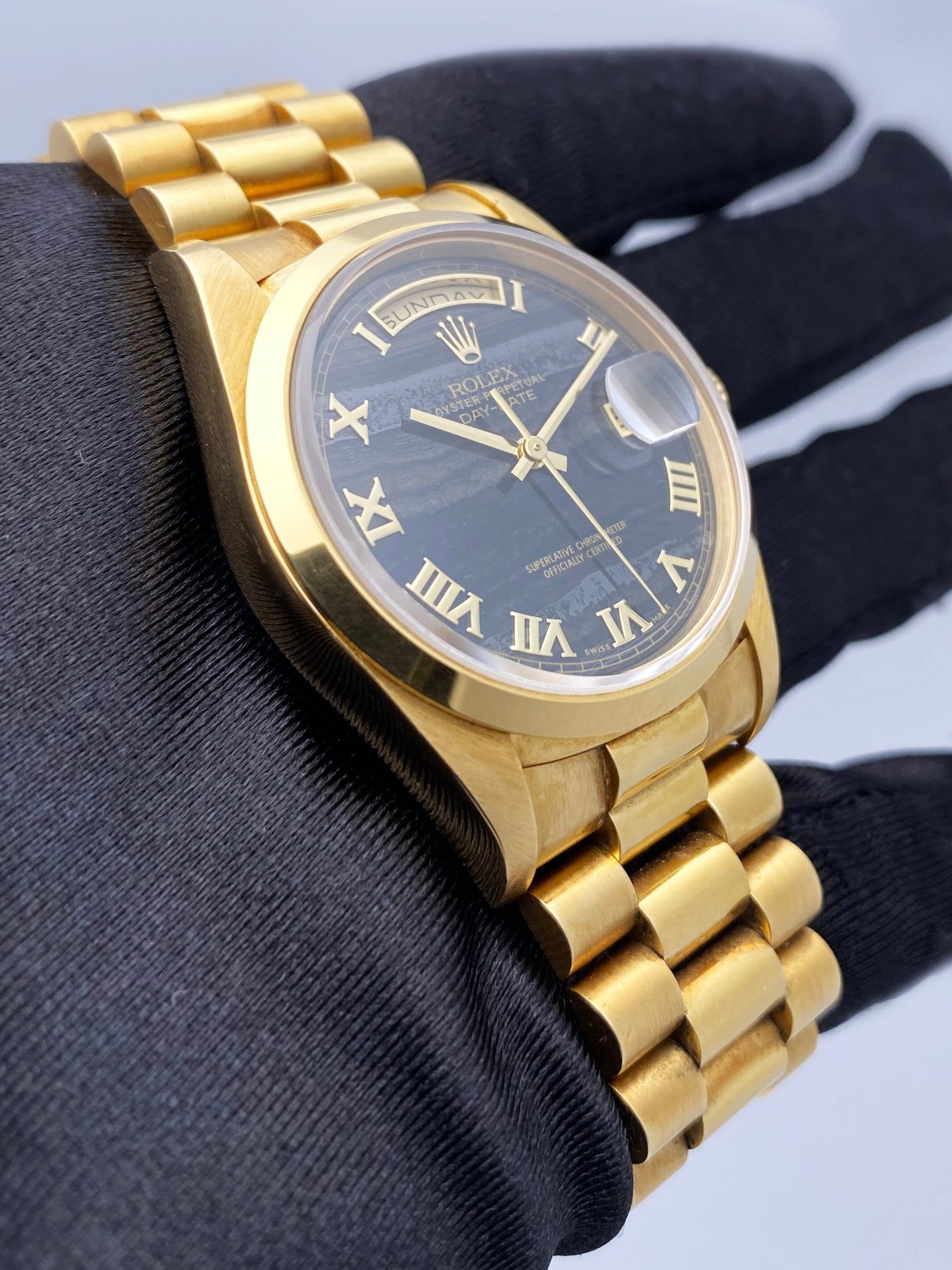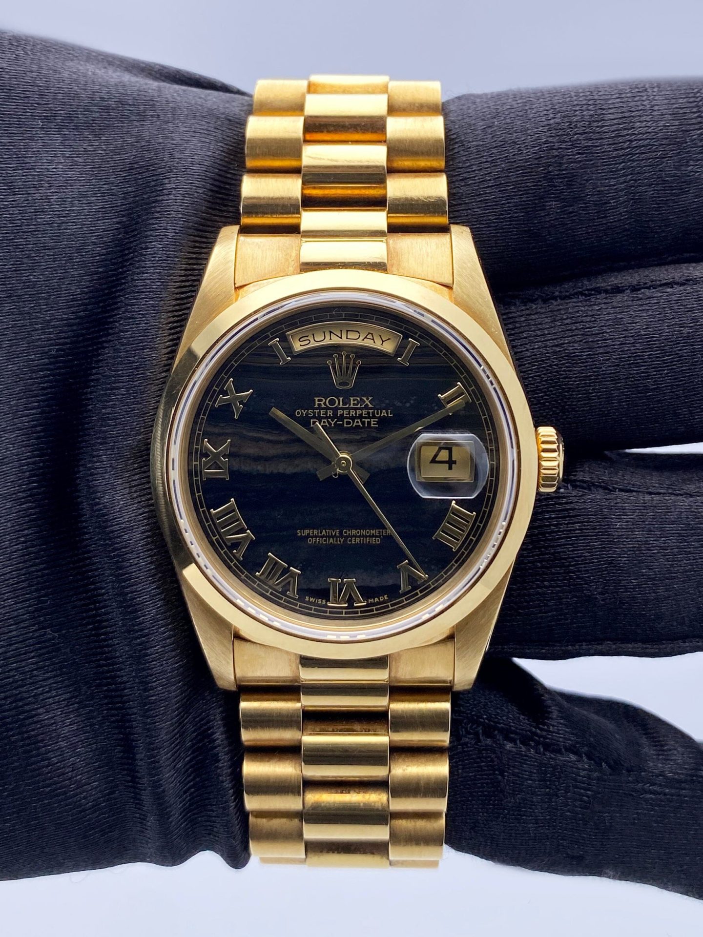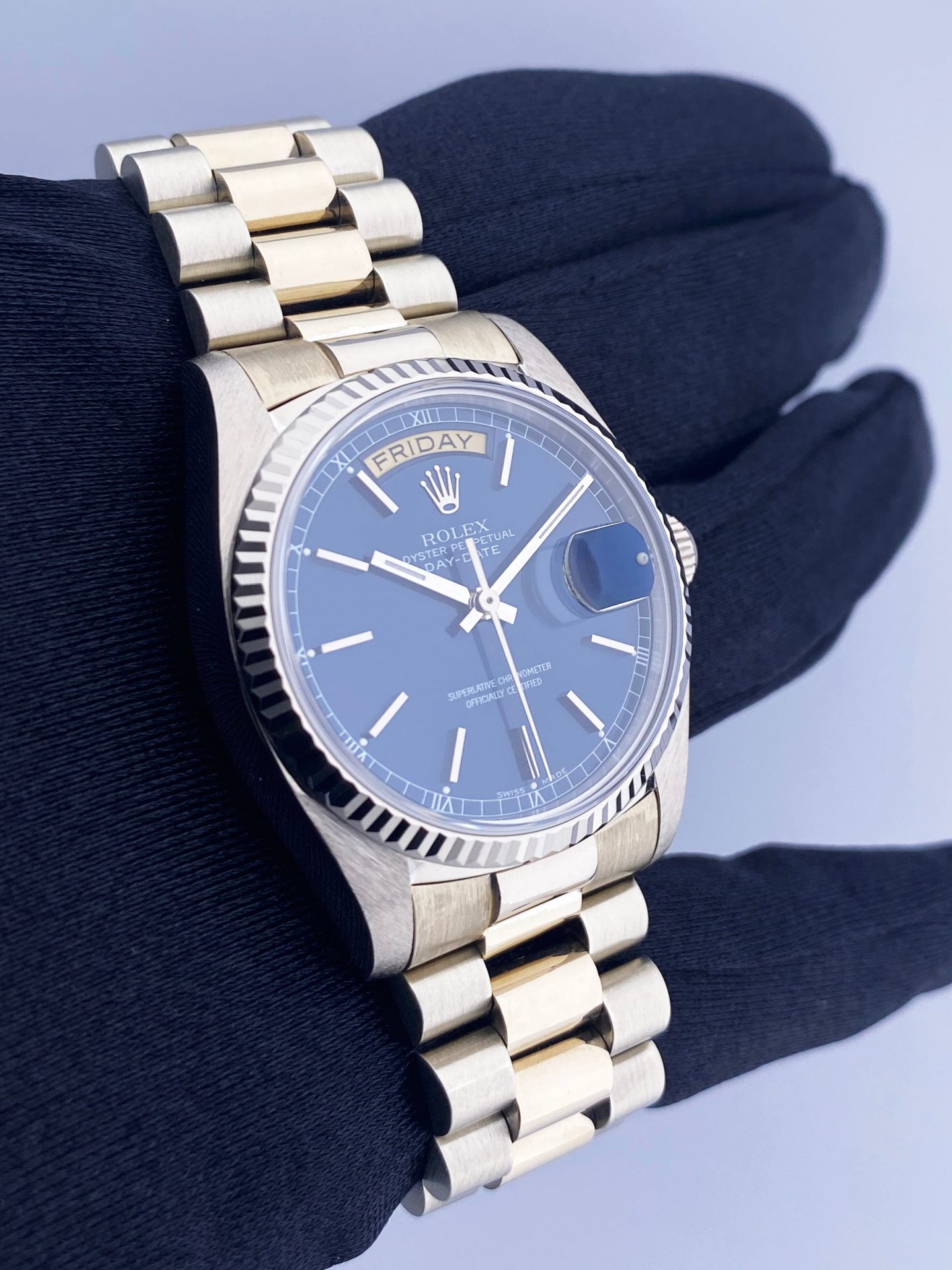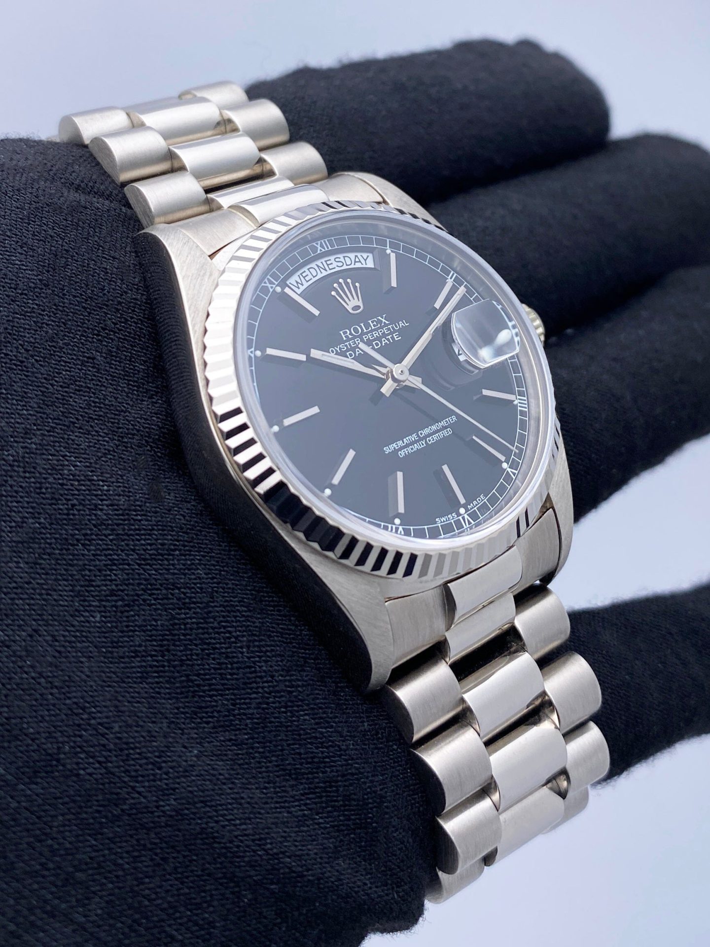 Rolex Day-Date 18039 Black Dial 18K White Gold Mens Watch Box Papers