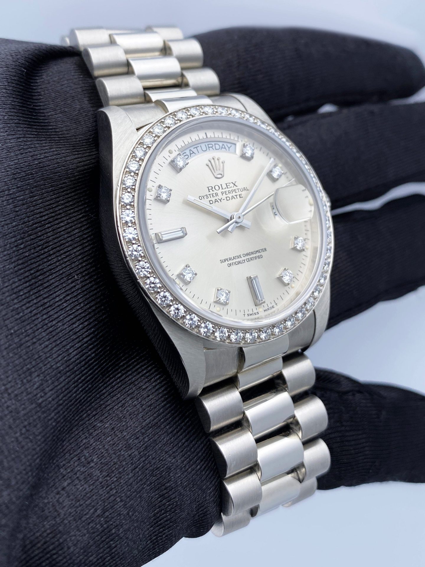 Rolex Day-Date 18239 18K White Gold Anniversary Diamond Dial Men’s Watch