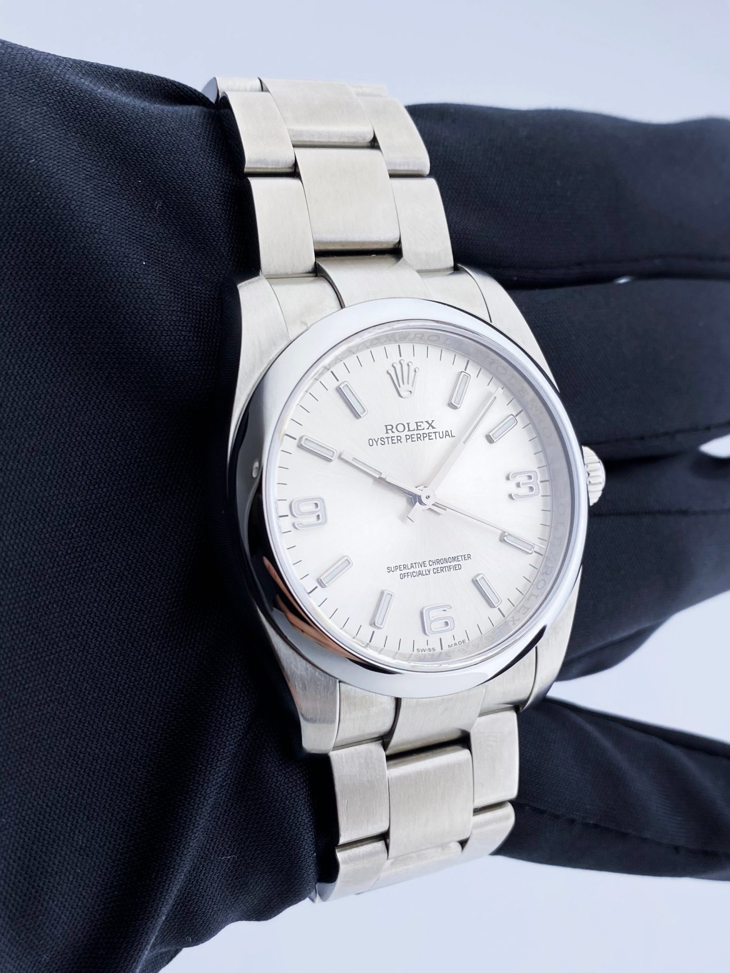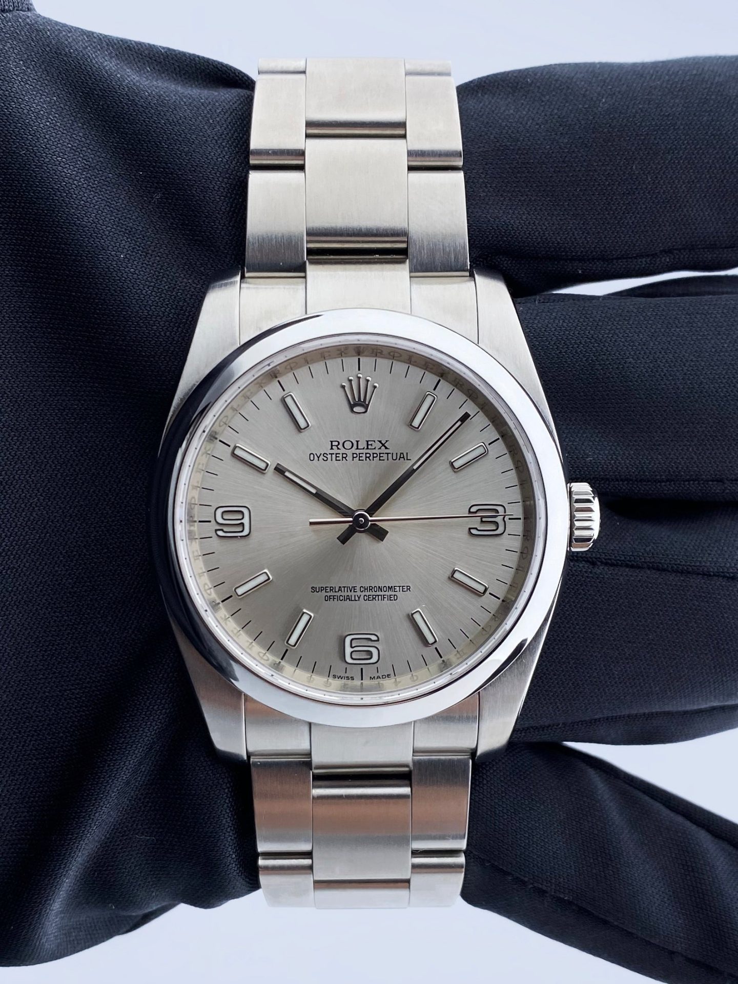 Rolex Oyster Perpetual 116000 Silver Dial Steel Mens Watch Box Papers