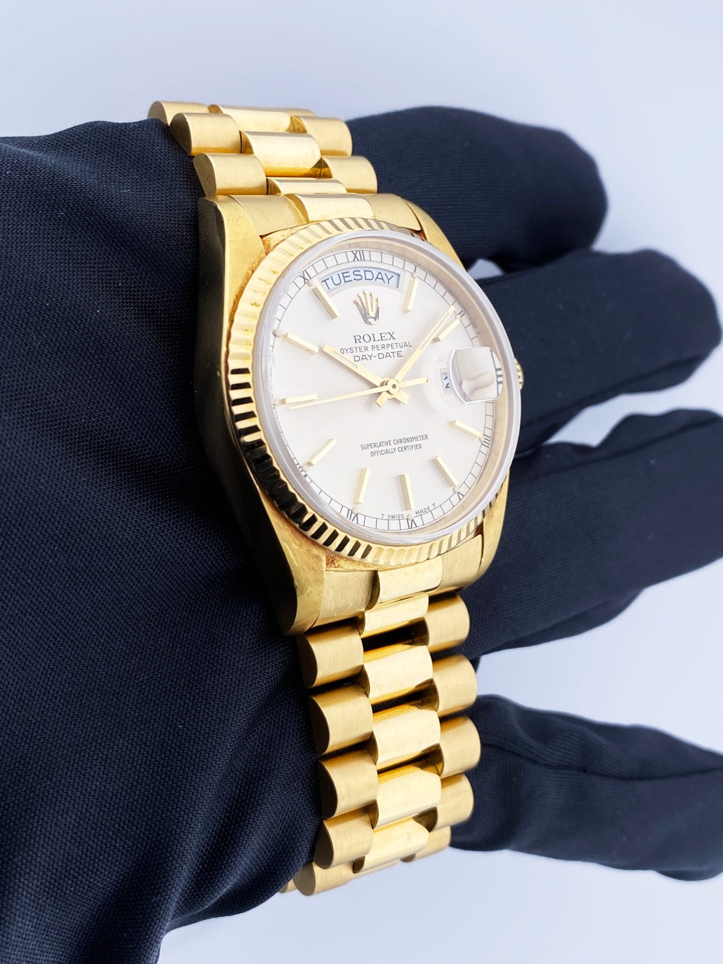 Rolex Day Date 1803 18K Yellow Gold Linen Dial Vintage Men s Watch Box Paper