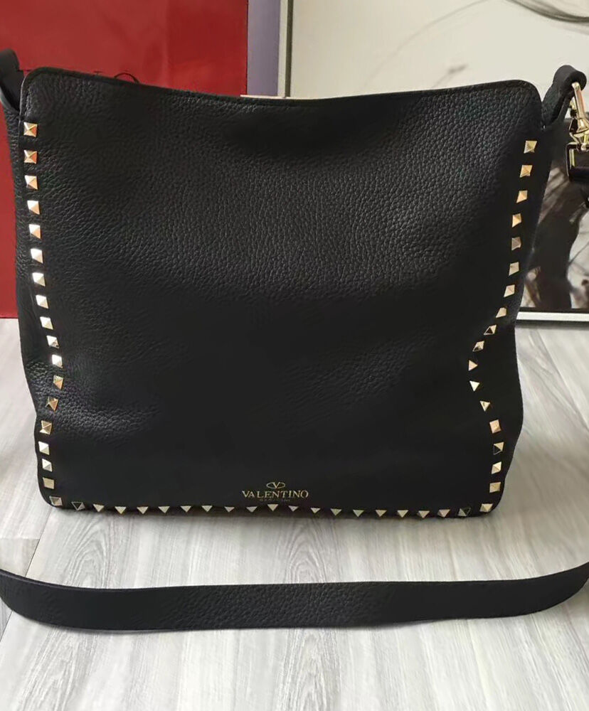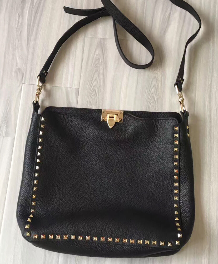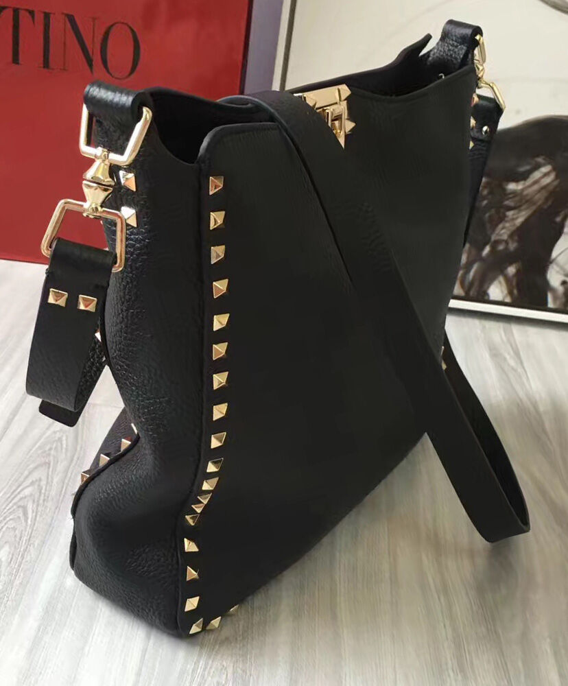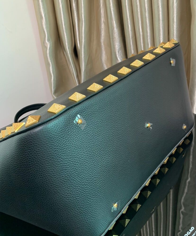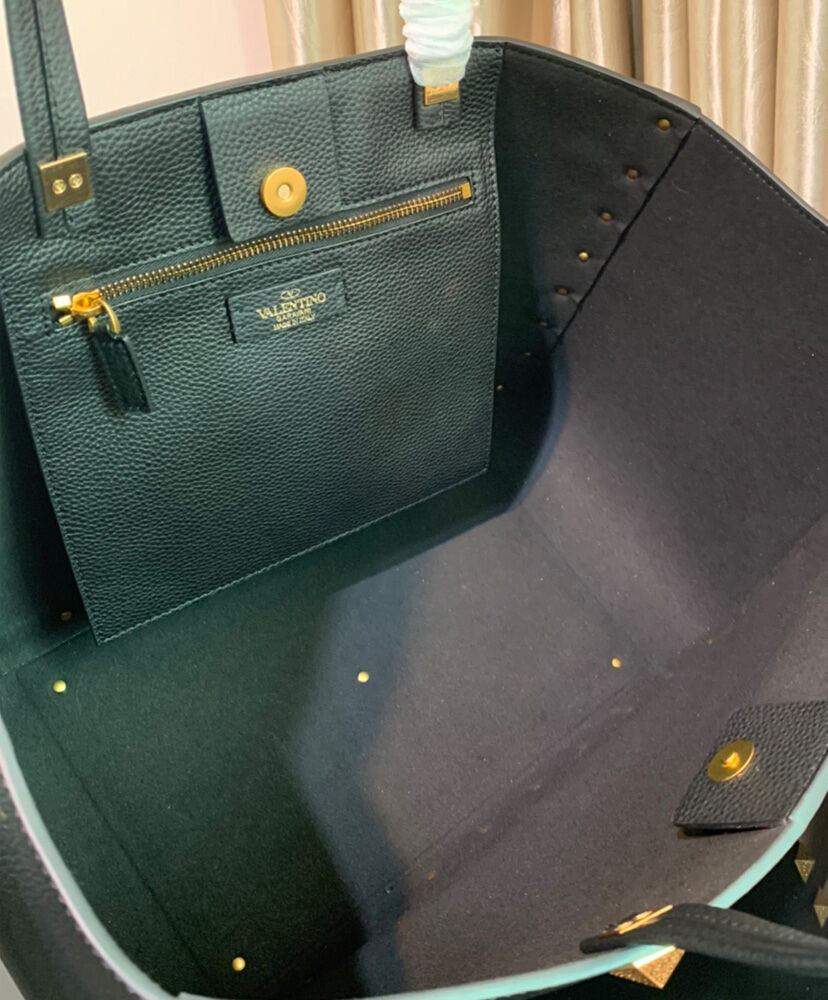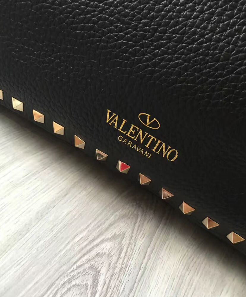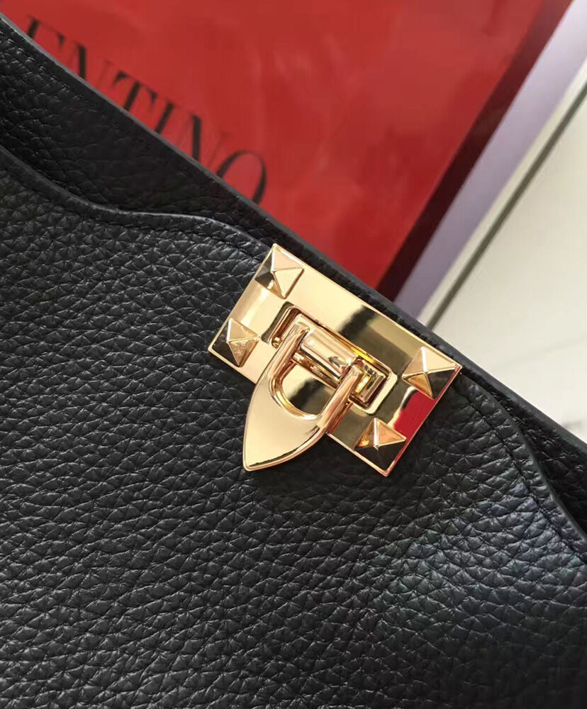 Valentino Roman Stud Grainy Calfskin Tote Bag Black