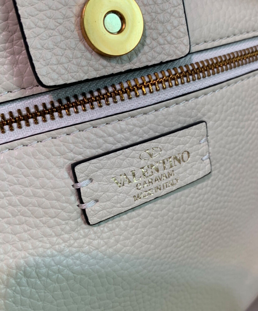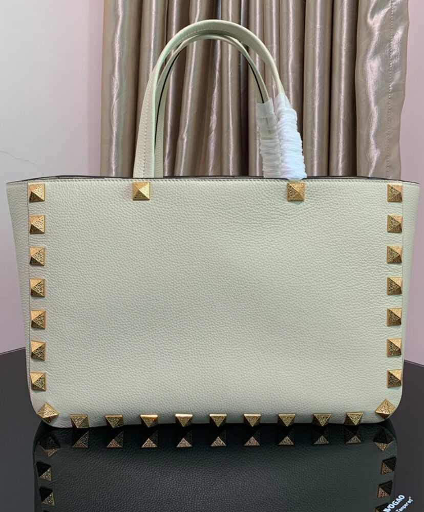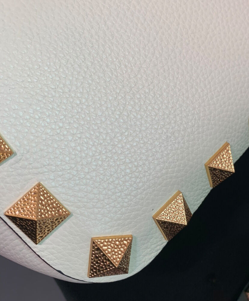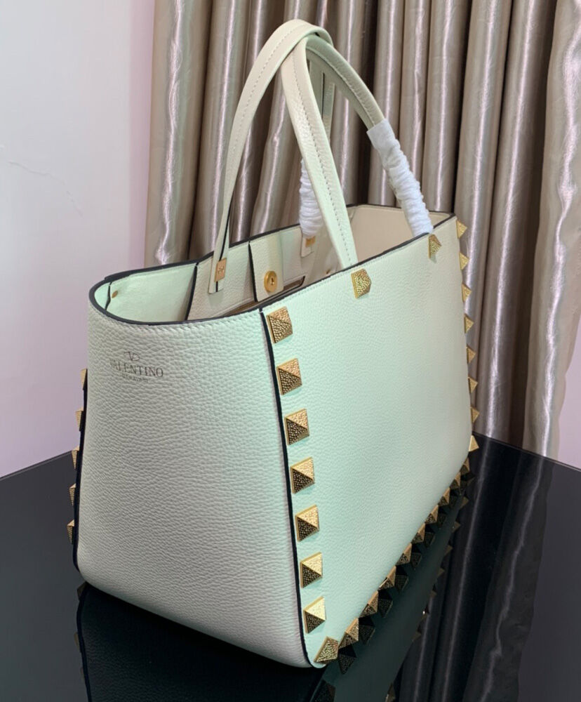 Valentino Roman Stud Grainy Calfskin Tote Bag White