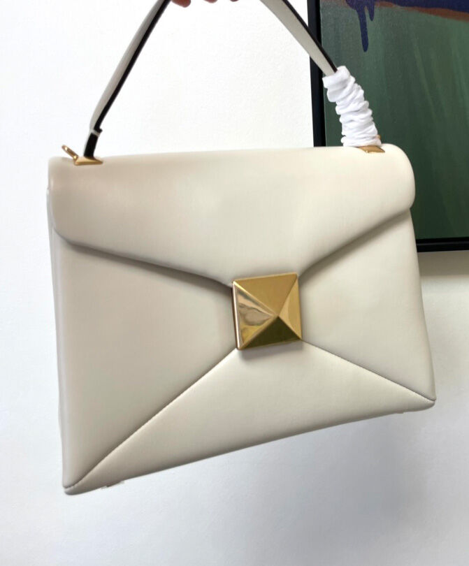 Valentino Small One Stud Handbag In Nappa Leather Cream