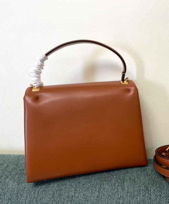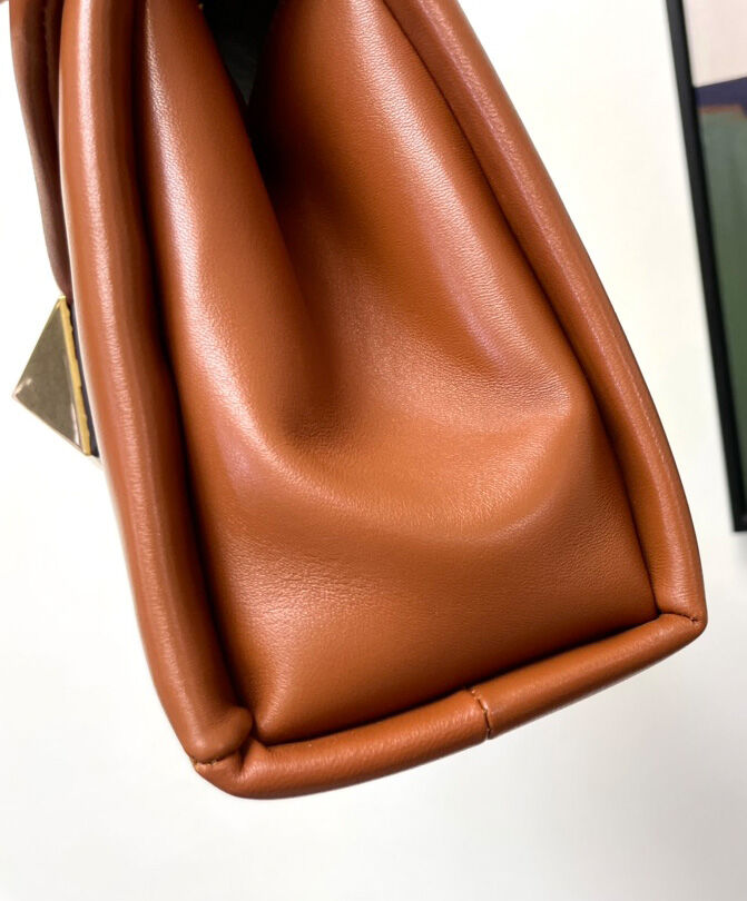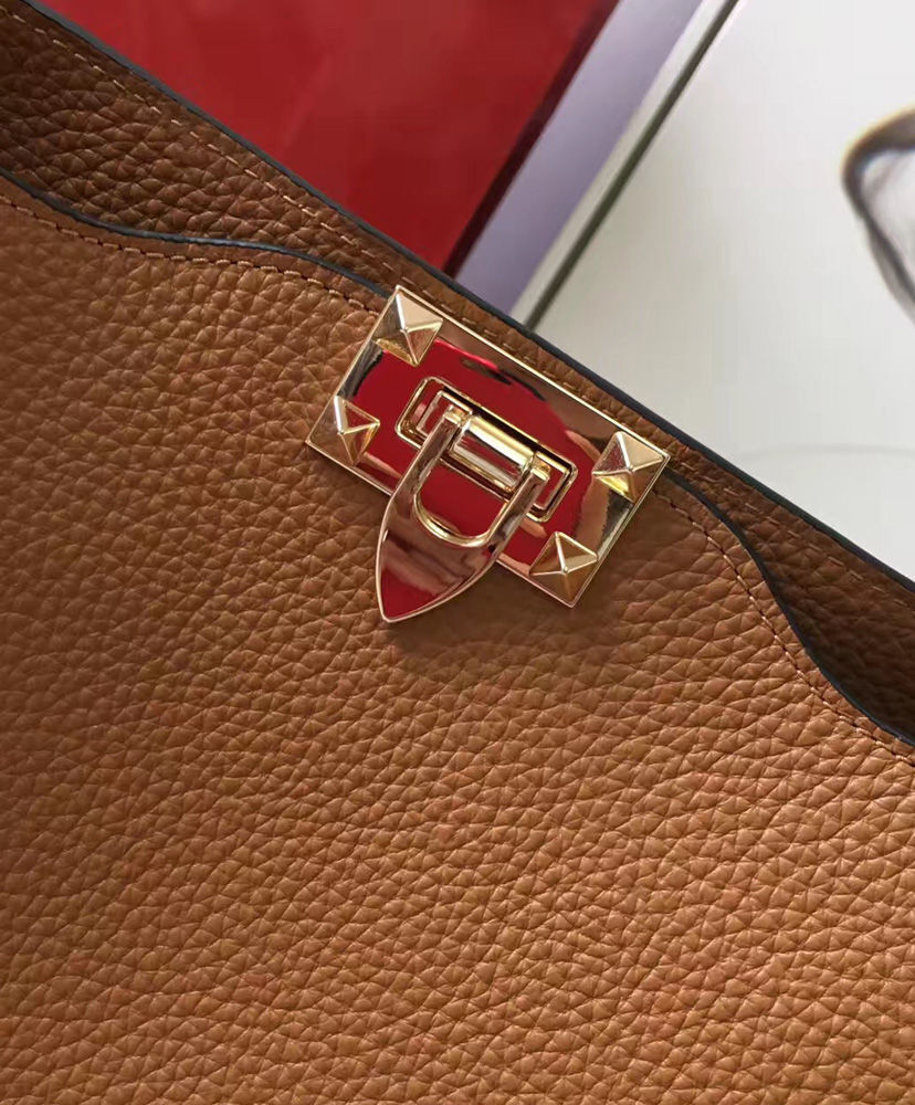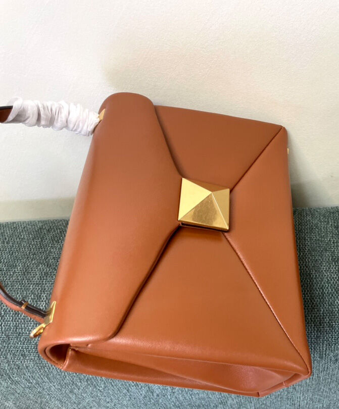 Valentino Small One Stud Handbag In Nappa Leather Coffee