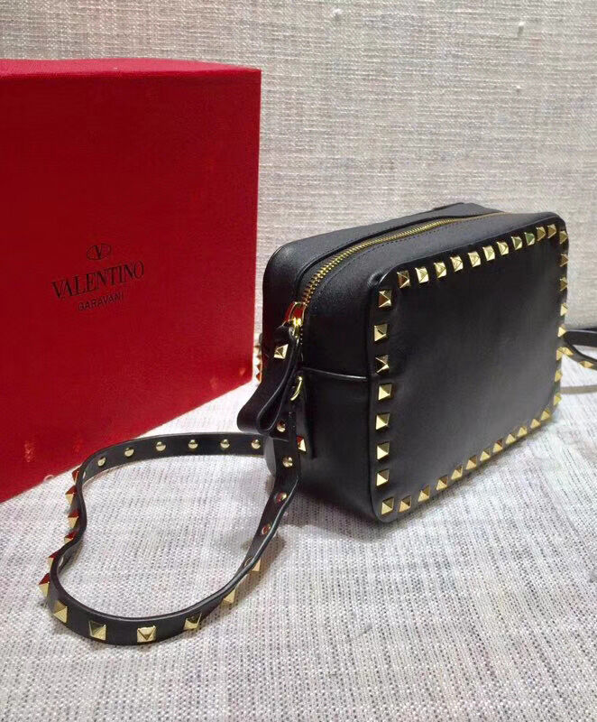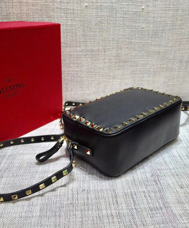 Valentino Small One Stud Handbag In Nappa Leather Black