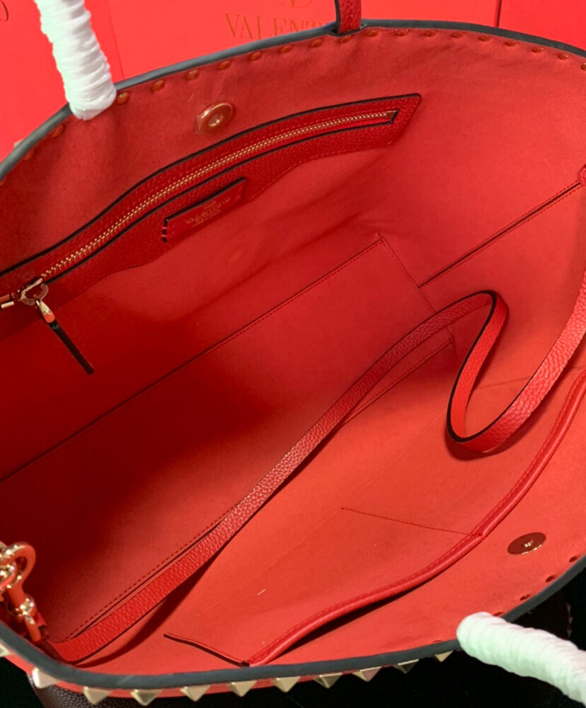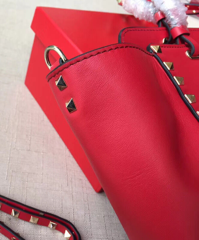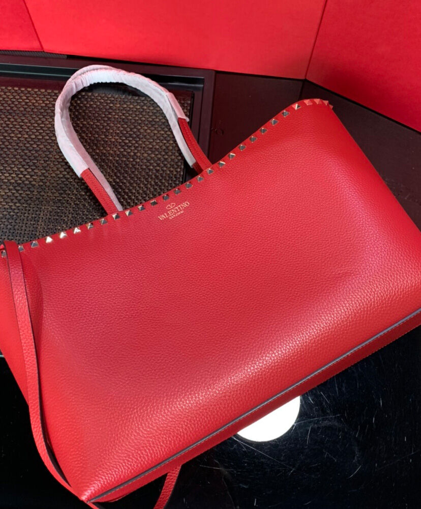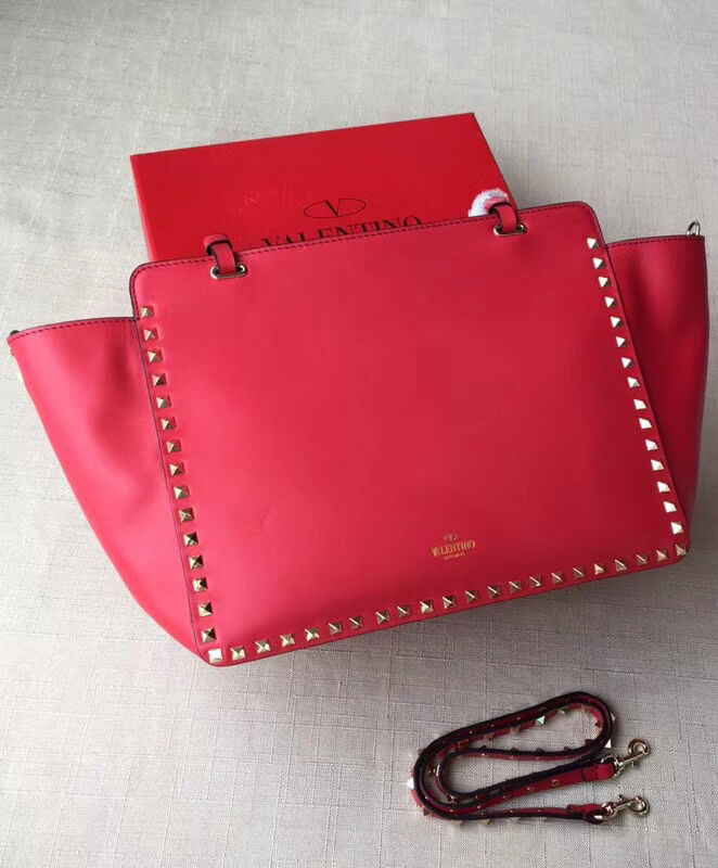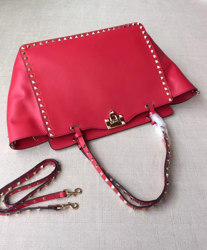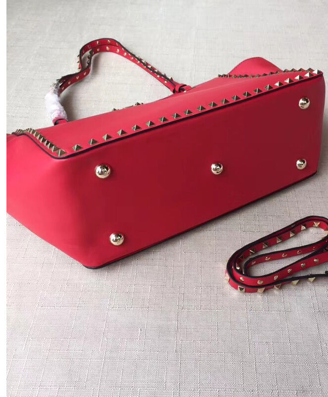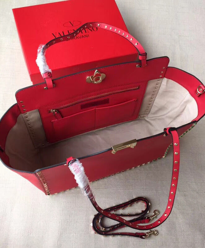 Valentino Large Calfskin Leather Rockstud Shopping Bag Red
