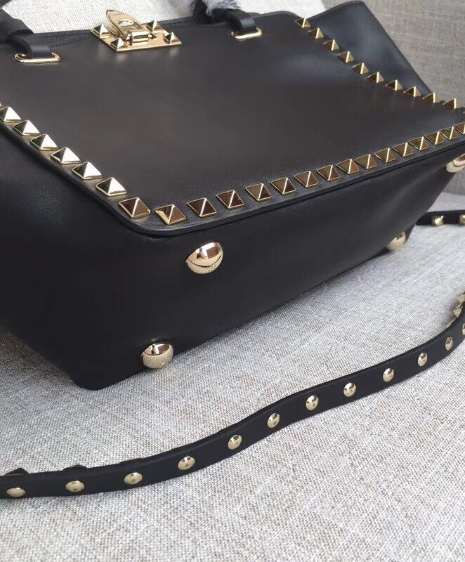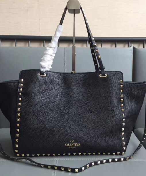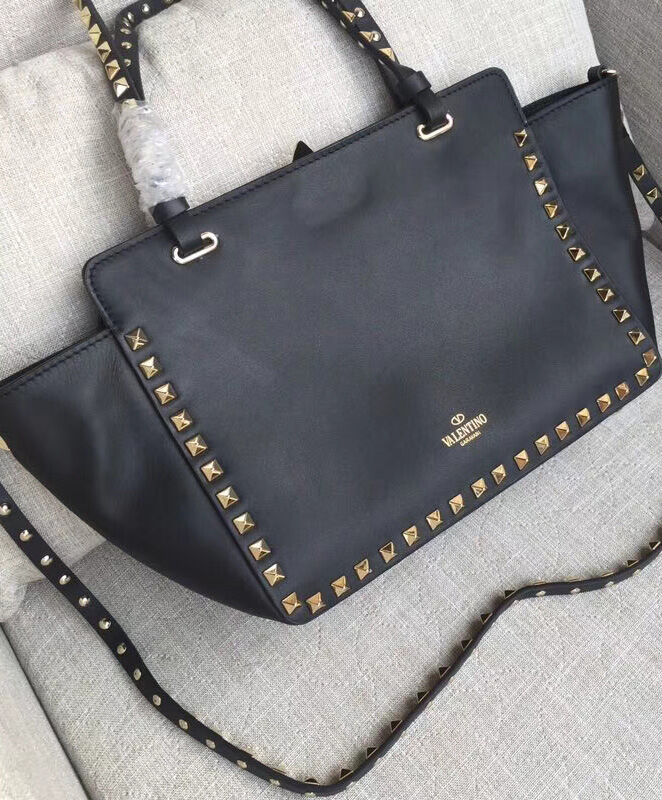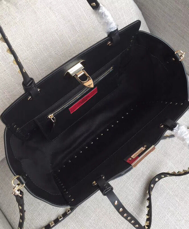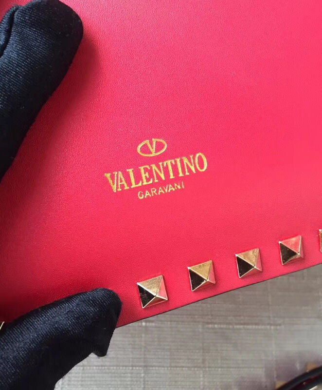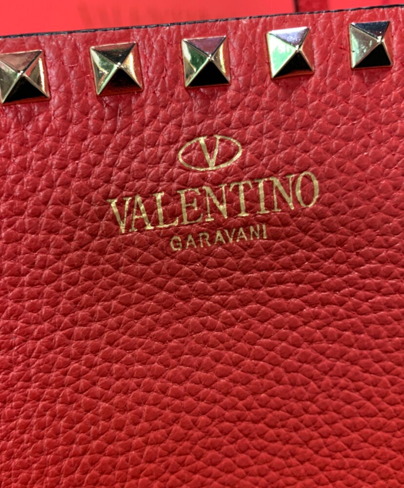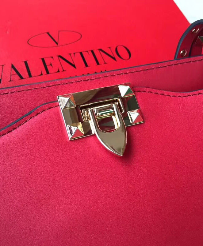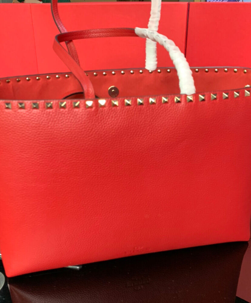 Valentino Large Calfskin Leather Rockstud Shopping Bag Red
