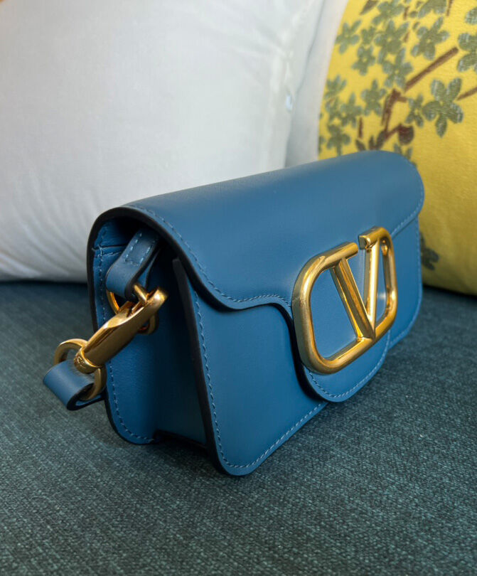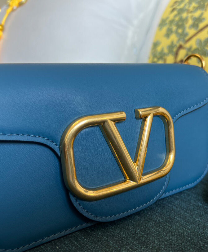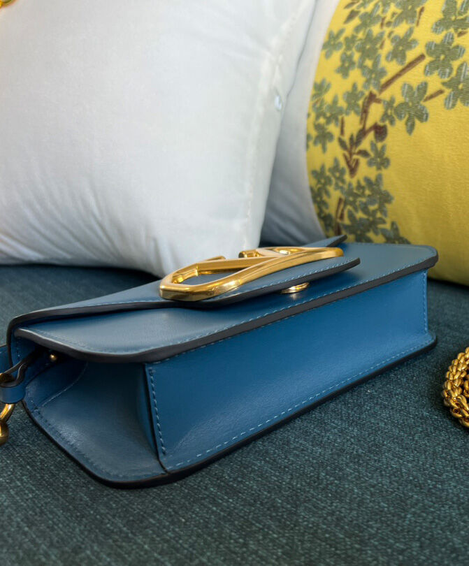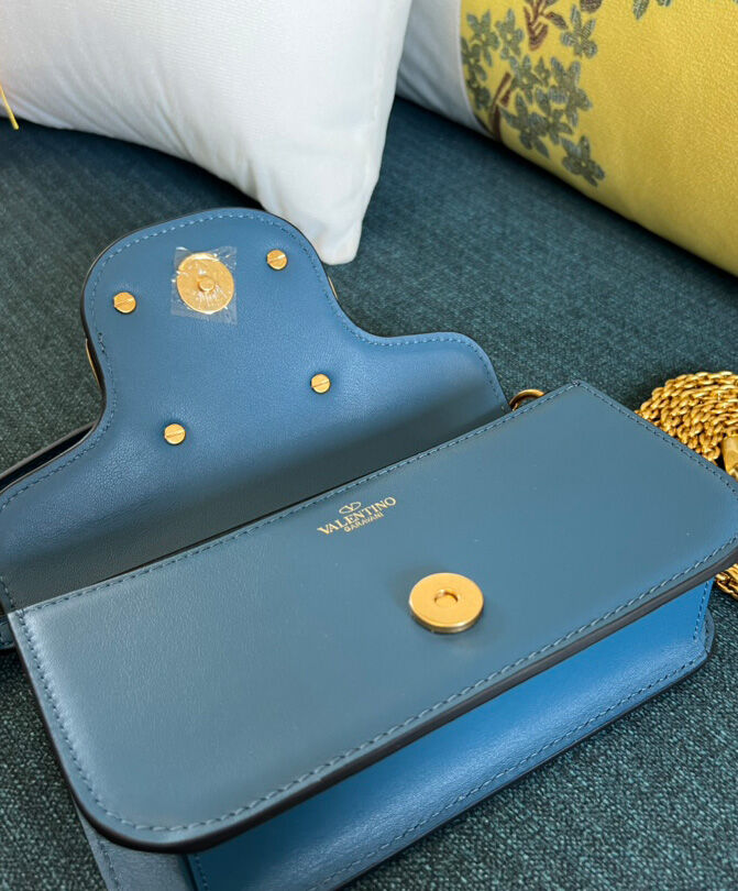 Valentino Loco Small Shoulder Bag In Calfskin Blue