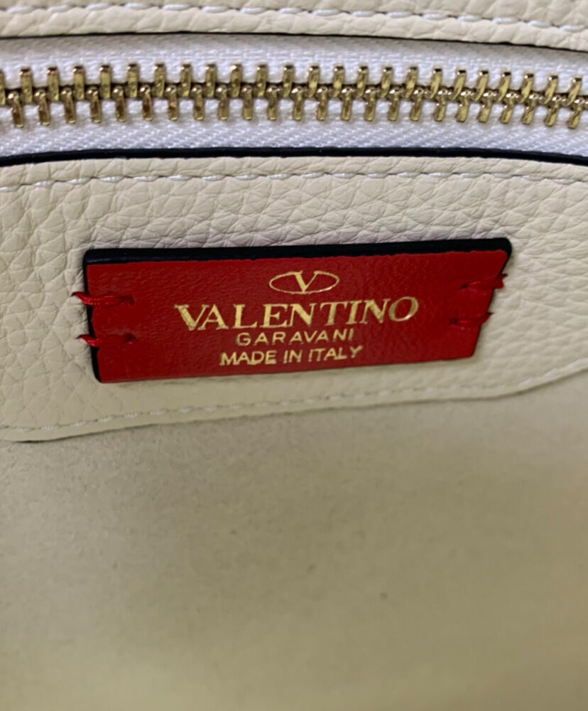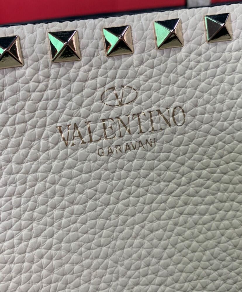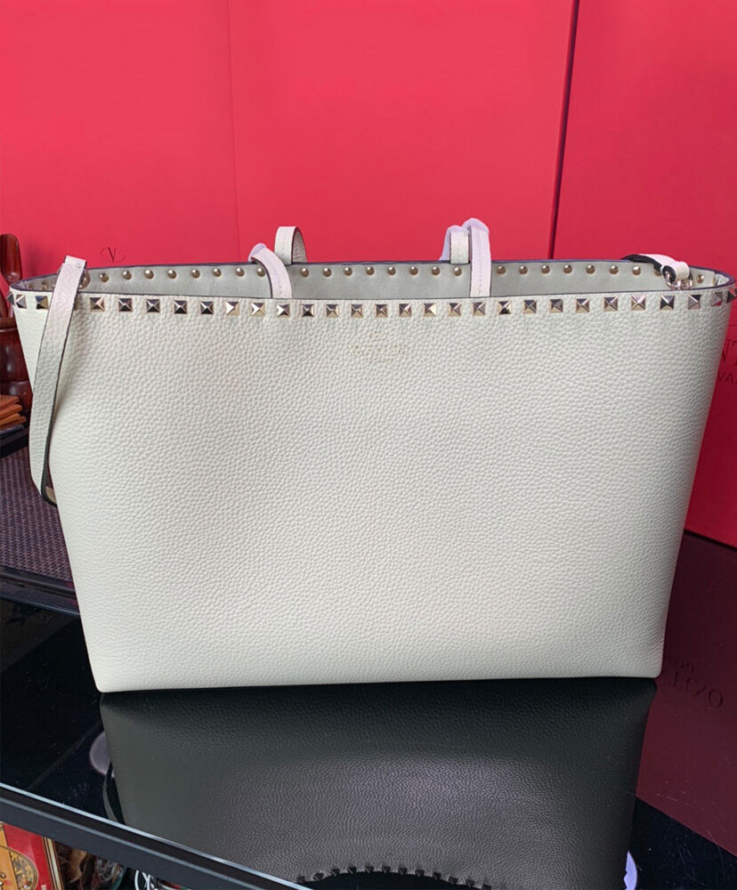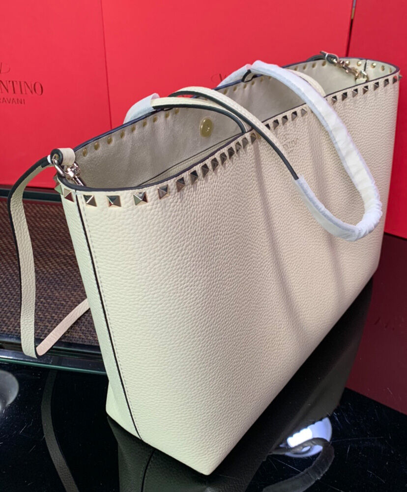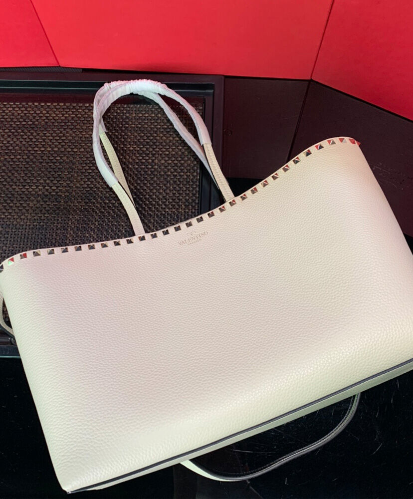Valentino Large Calfskin Leather Rockstud Shopping Bag Cream