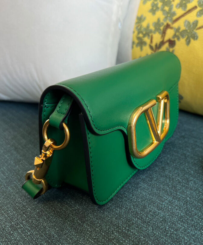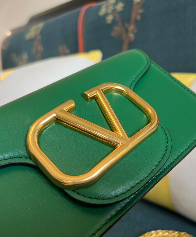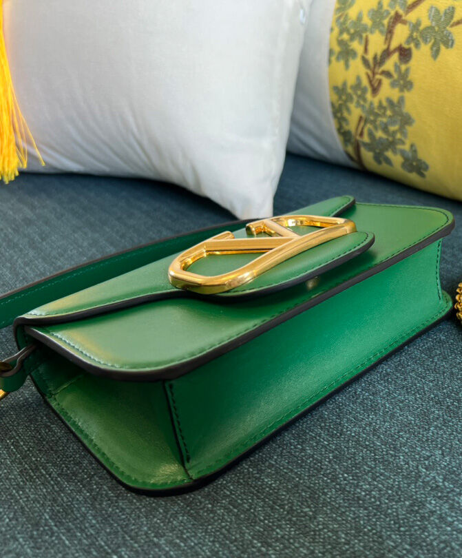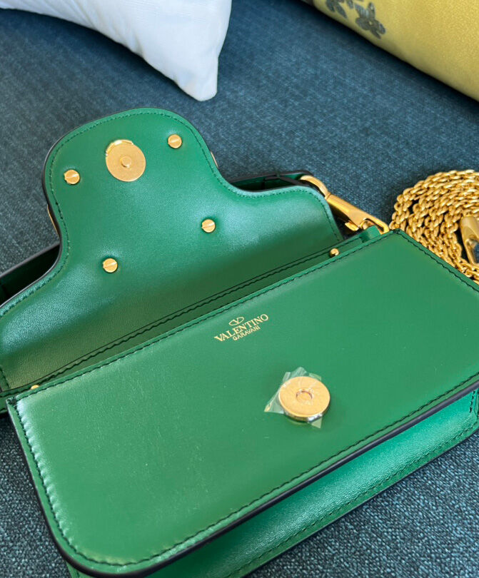 Valentino Loco Small Shoulder Bag In Calfskin Green