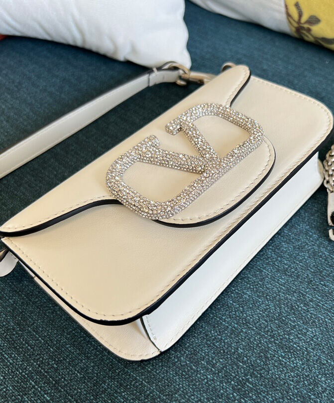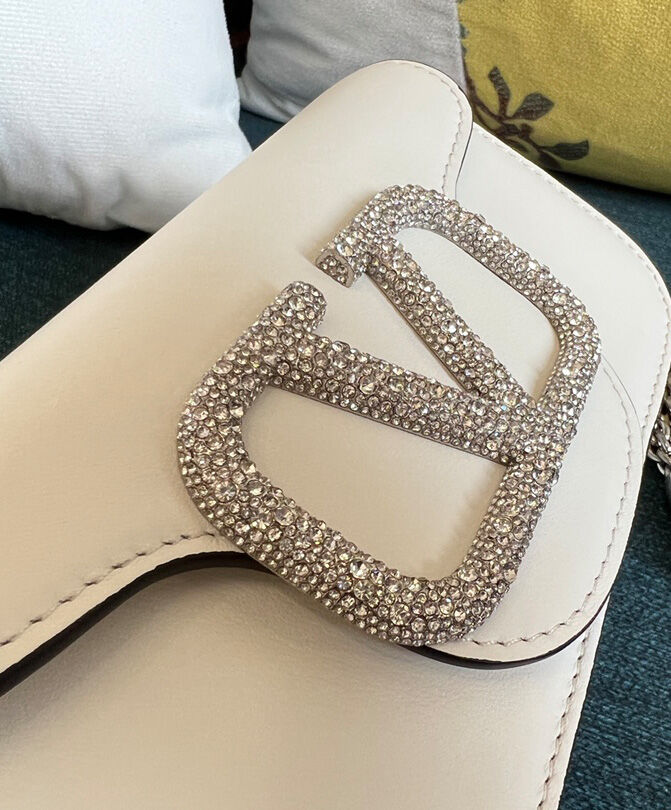 Valentino Loco Small Shoulder Bag With Jewel Logo Cream