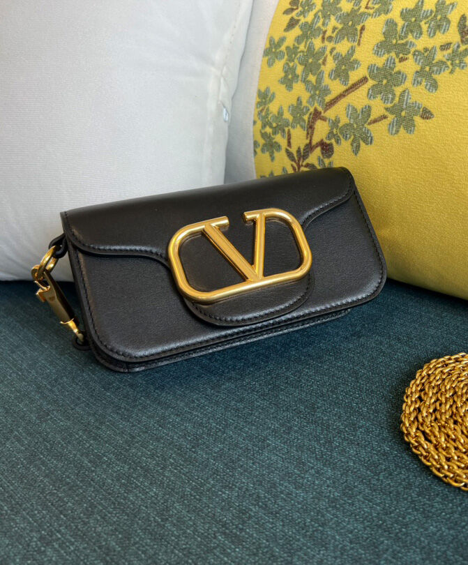 Valentino Loco Small Shoulder Bag In Calfskin Black