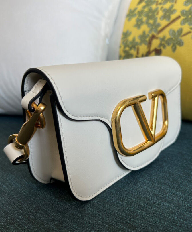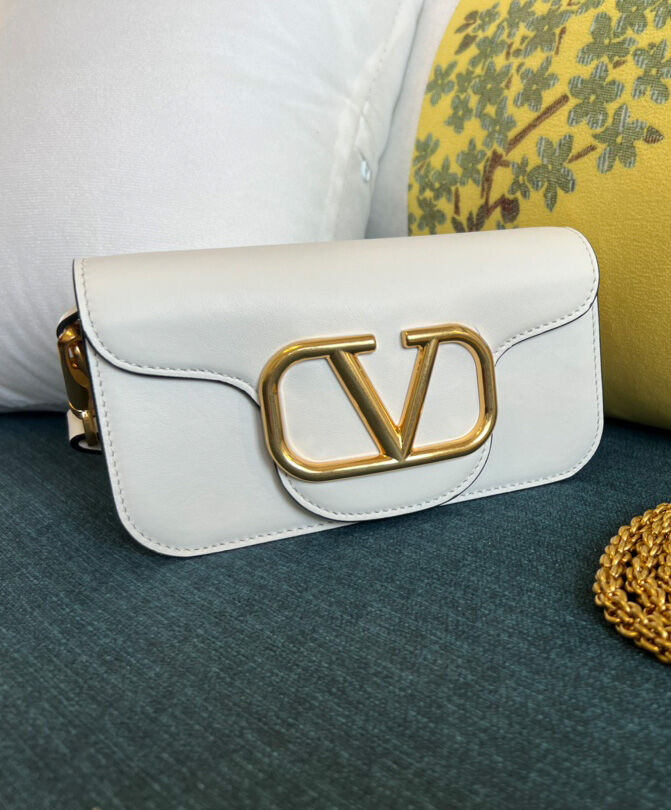 Valentino Loco Small Shoulder Bag In Calfskin Cream