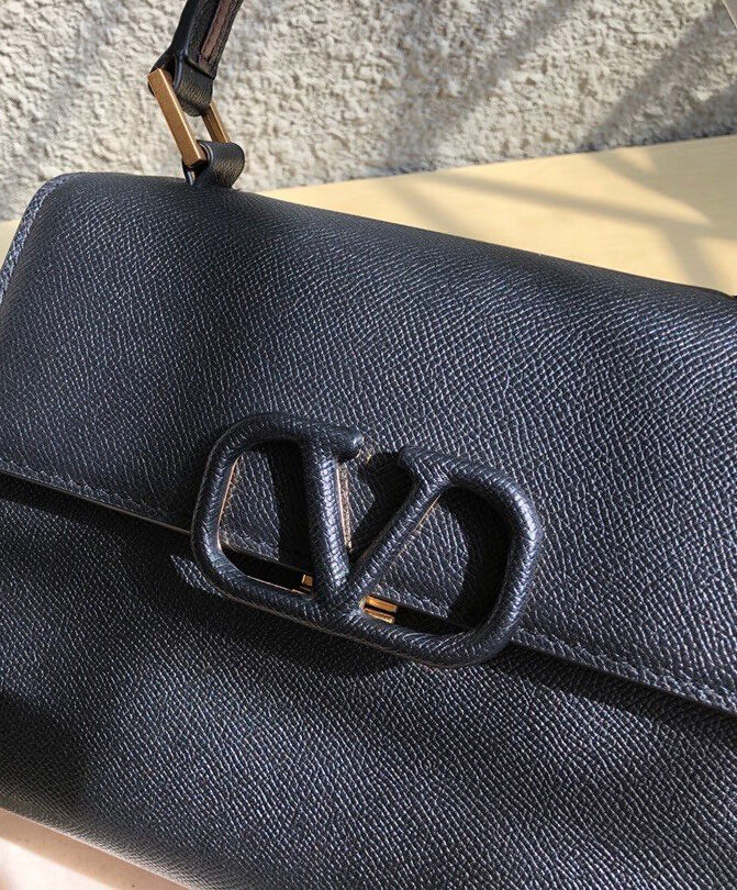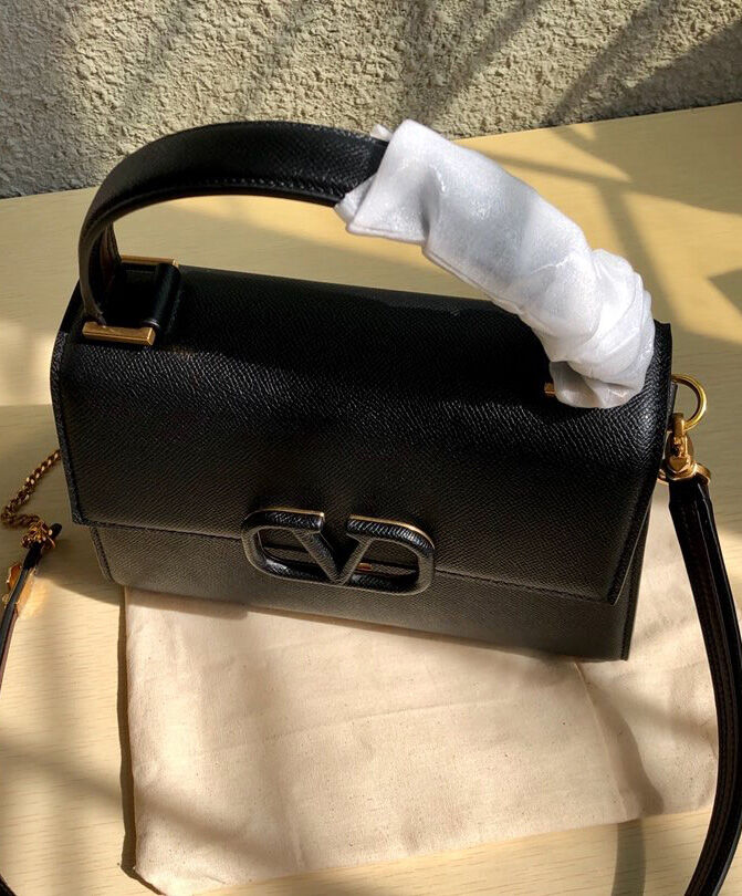 Valentino Garavani Small Vsling Grainy Calfskin Handbag Black