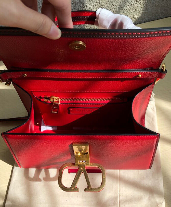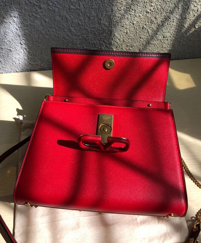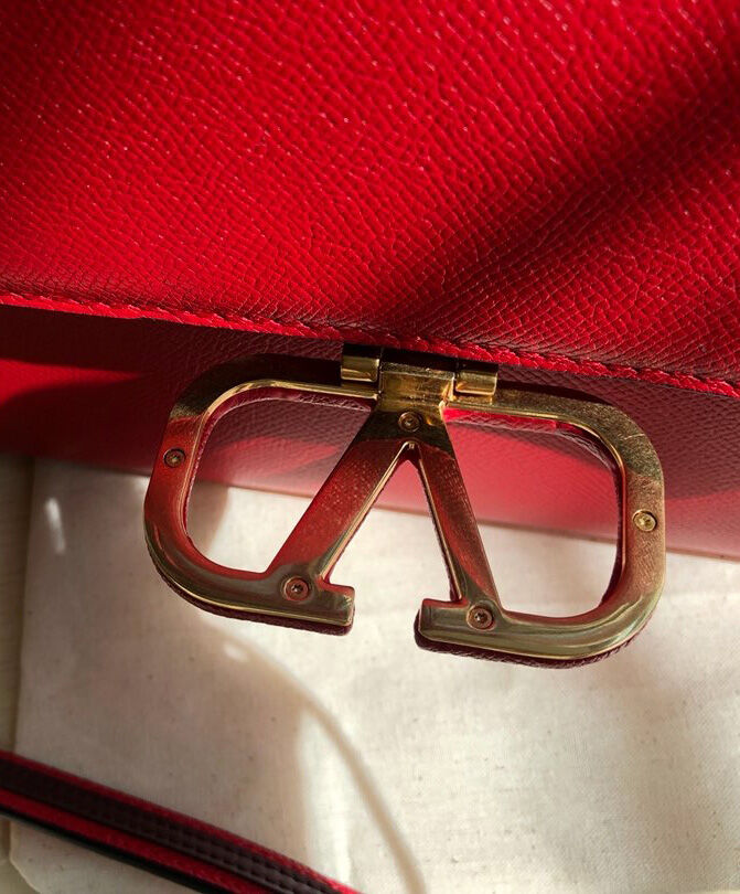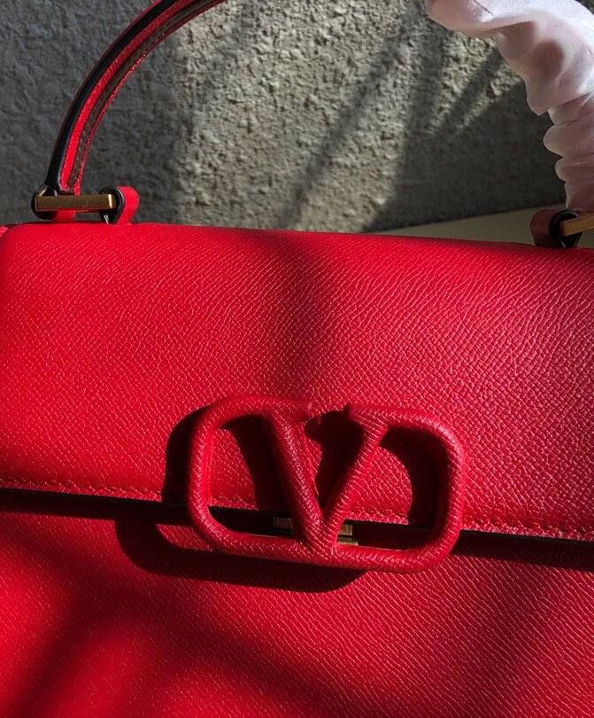 Valentino Garavani Small Vsling Grainy Calfskin Handbag Red