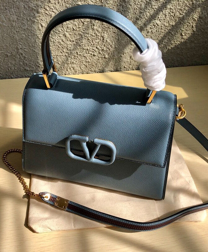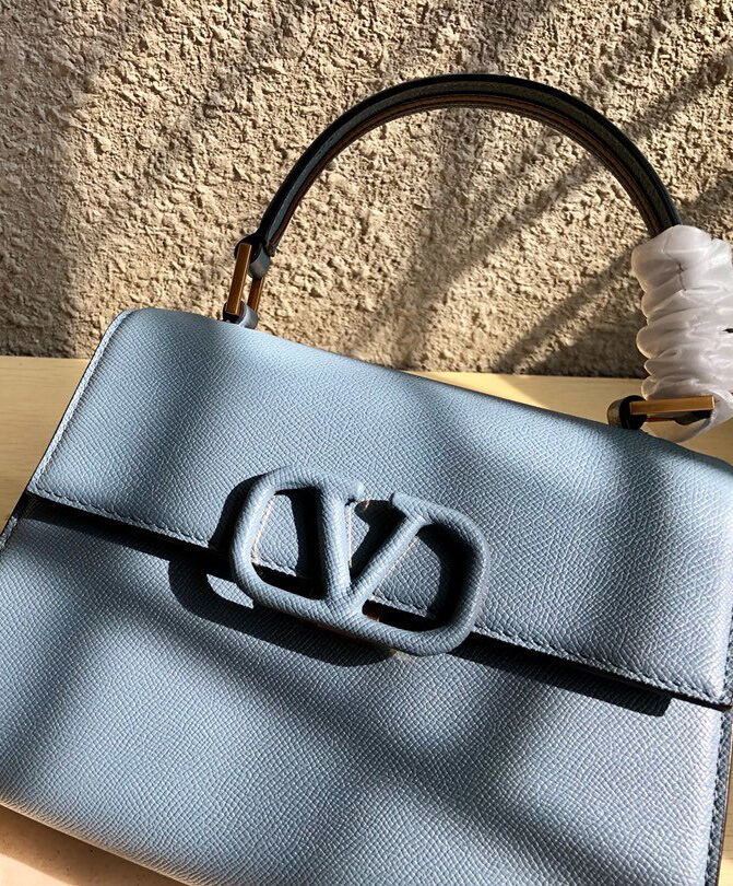 Valentino Garavani Small Vsling Grainy Calfskin Handbag Light Blue