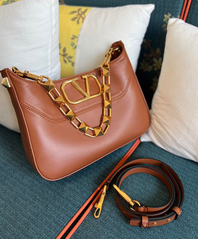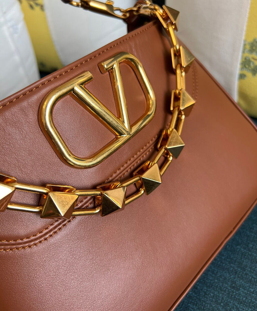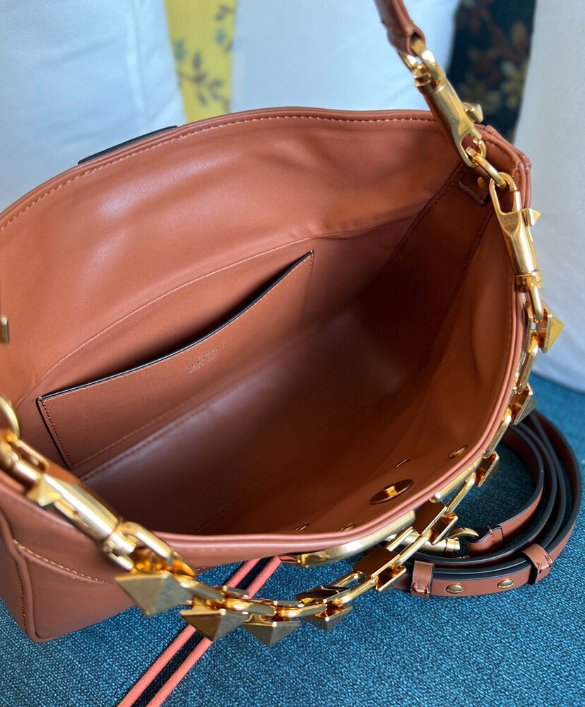 Valentino Garavani Stud Sign Hobo Bag Coffee