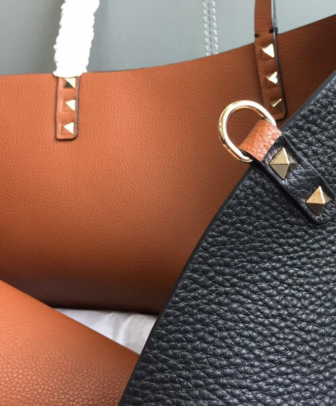 Valentino Garavani Rockstud Reversible Double-Sided Tote Bag Coffee