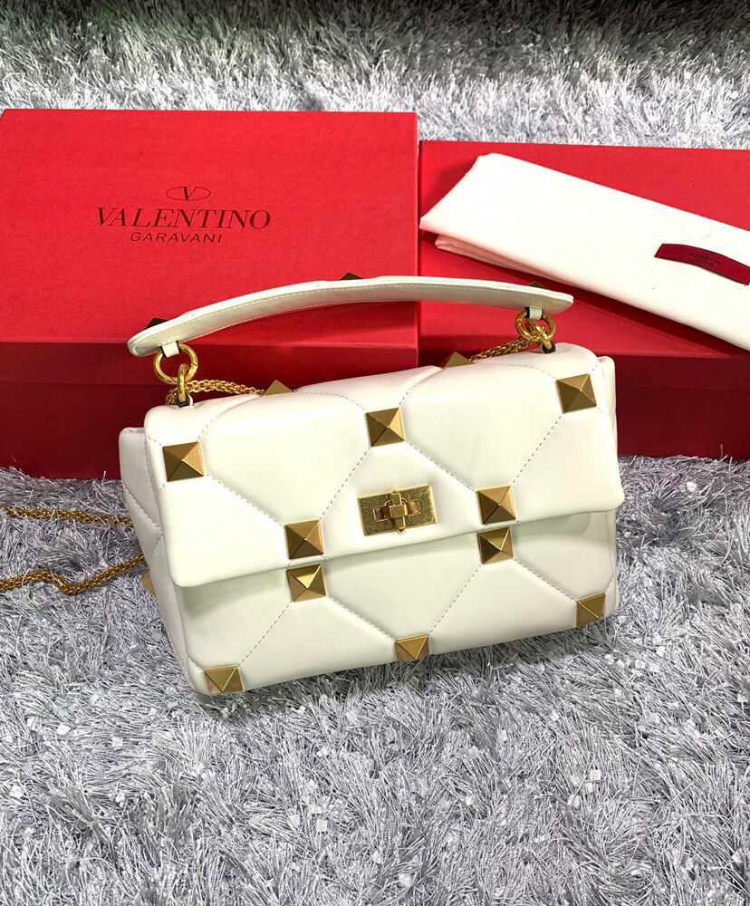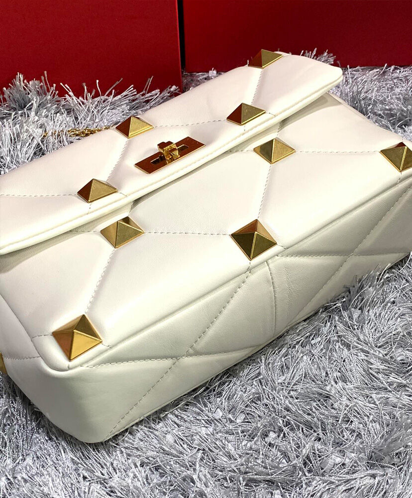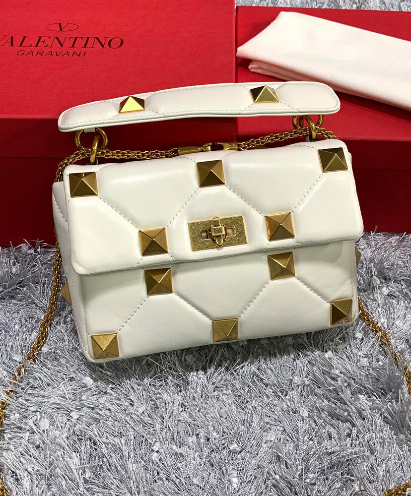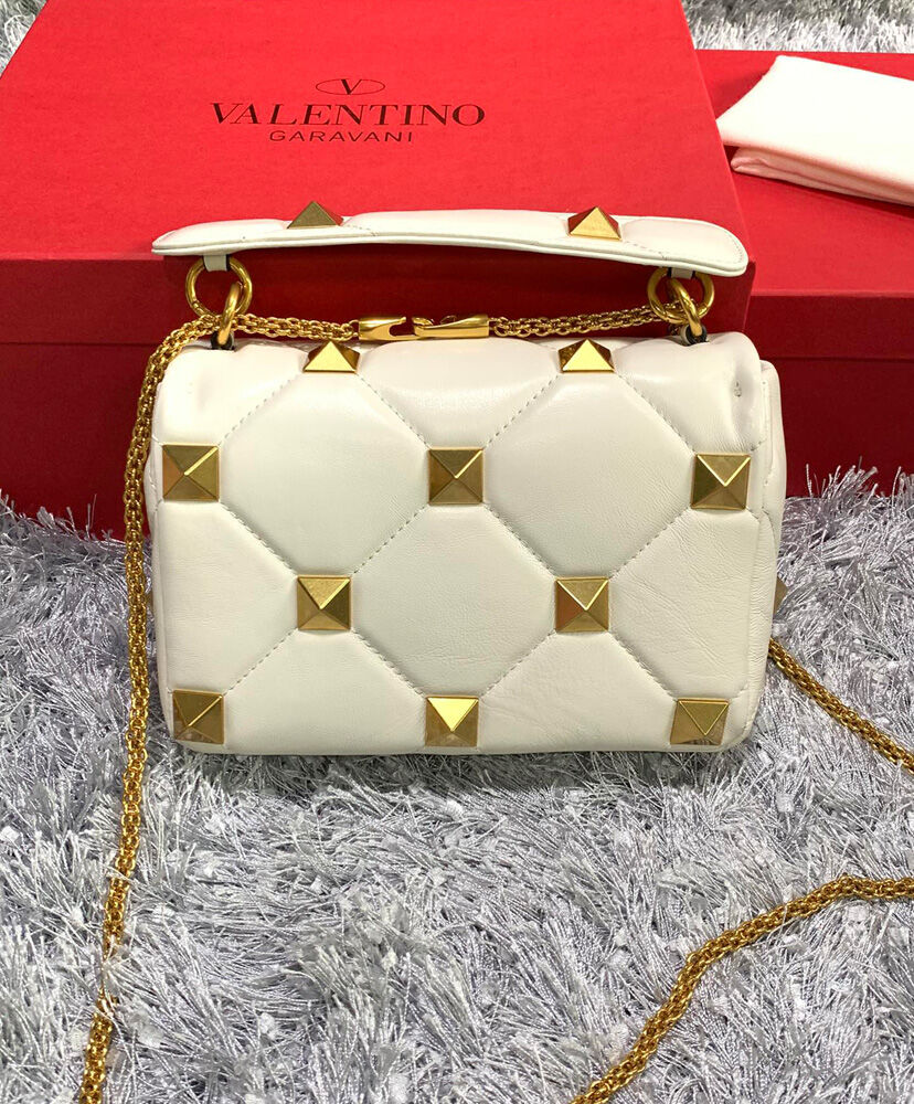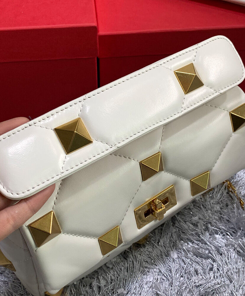 Valentino Garavani Roman Stud Nappa Chain Bag White