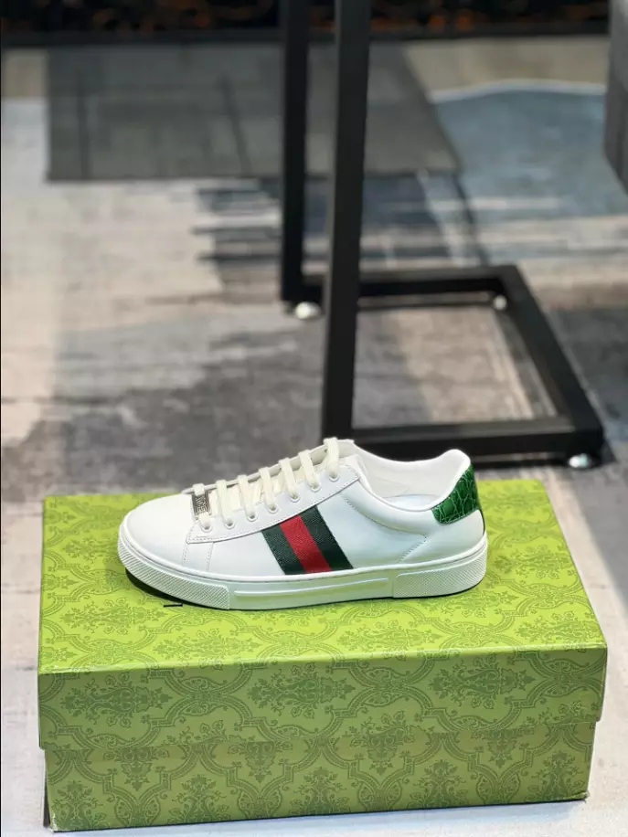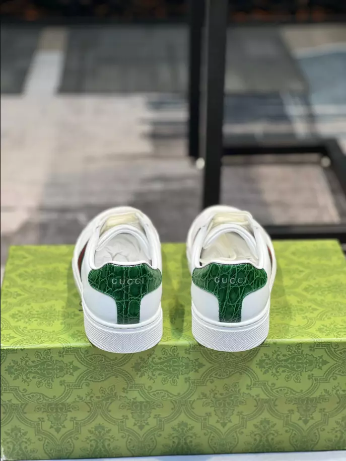 GUCCI ACE LEATHER SNEAKER WITH GREEN CROCODILE GC229