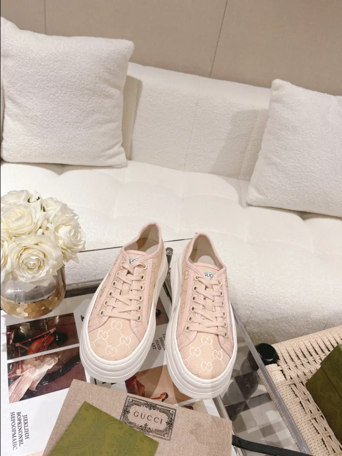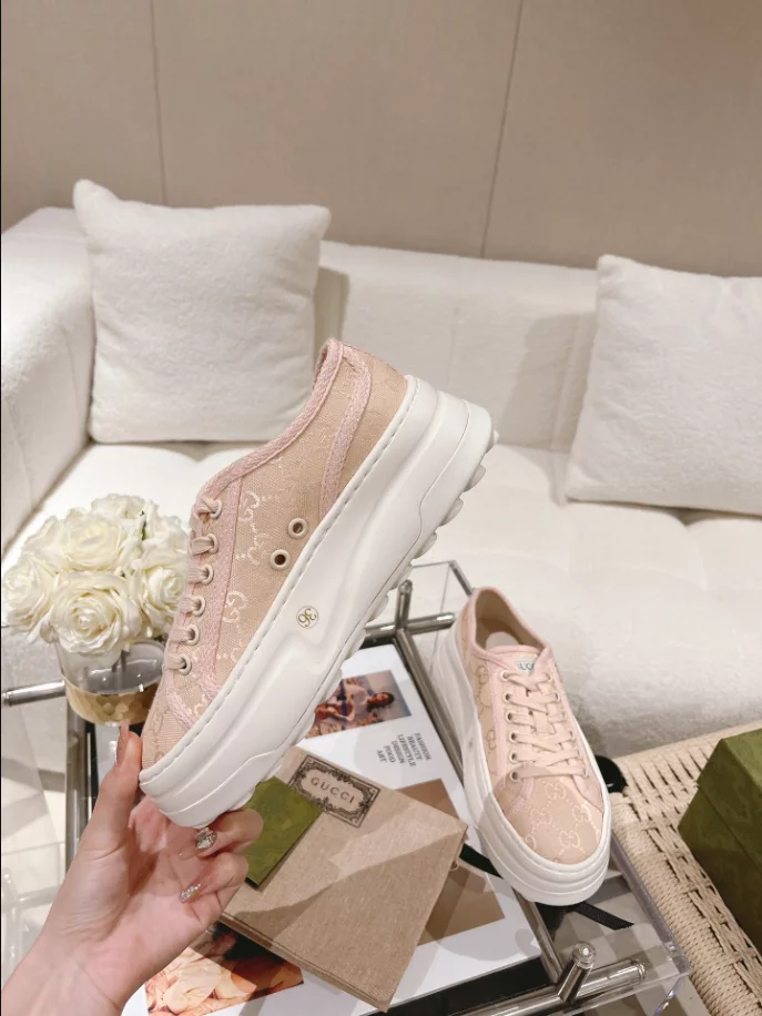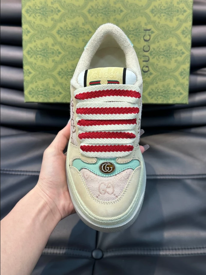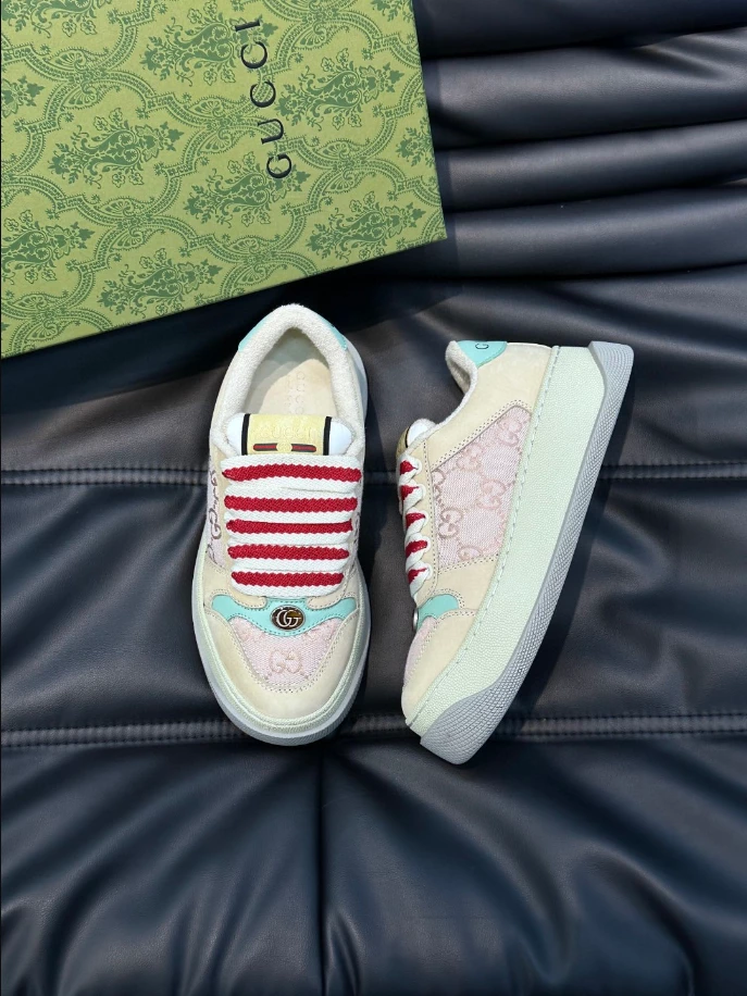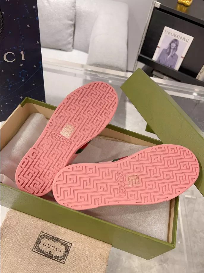 GUCCI SCREENER TRAINER SNEAKERS IN BEIGE AND PINK �?GC170