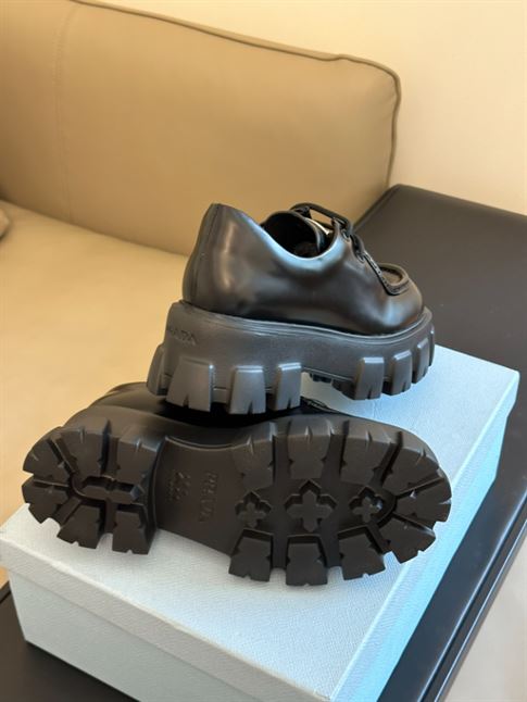 PRADA MONOLITH BRUSHED LEATHER LACE-UP SHOES PRS059