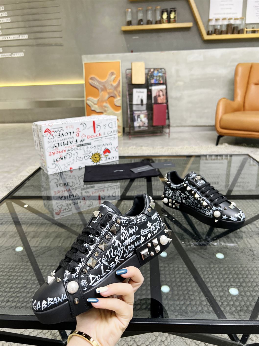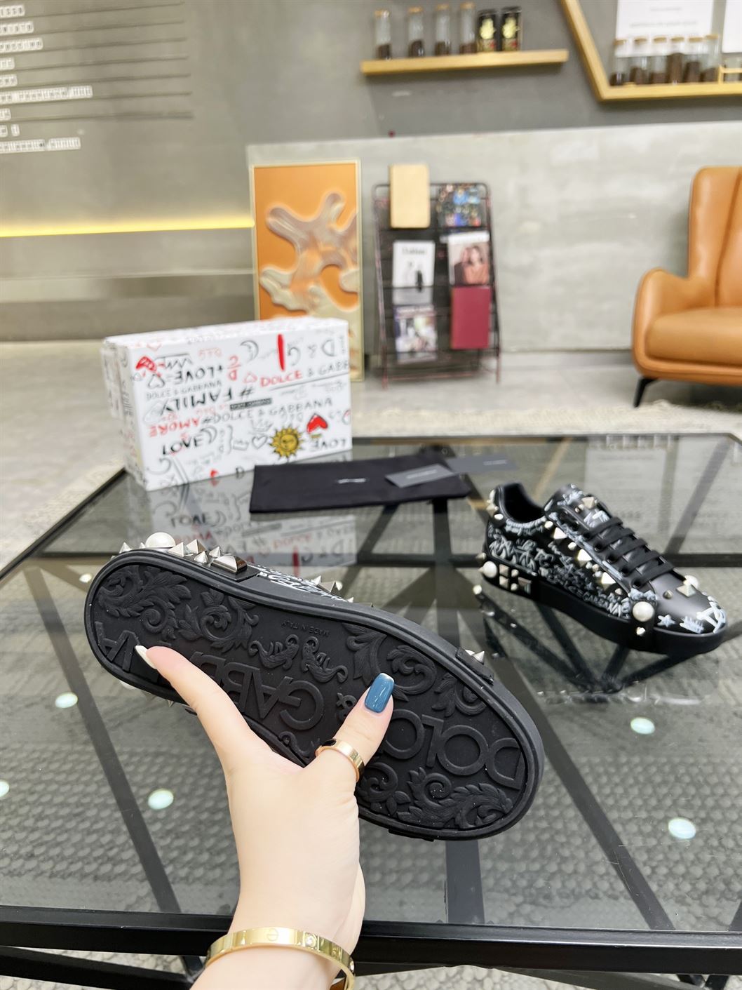 DOLCE GABBANA CALFSKIN NAPPA PORTOFINO SNEAKERS WITH STUDS ?��� DG018