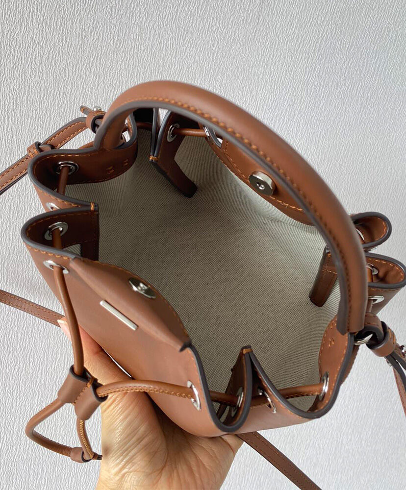 Burberry Monogram Motif Leather Bucket Bag Coffee
