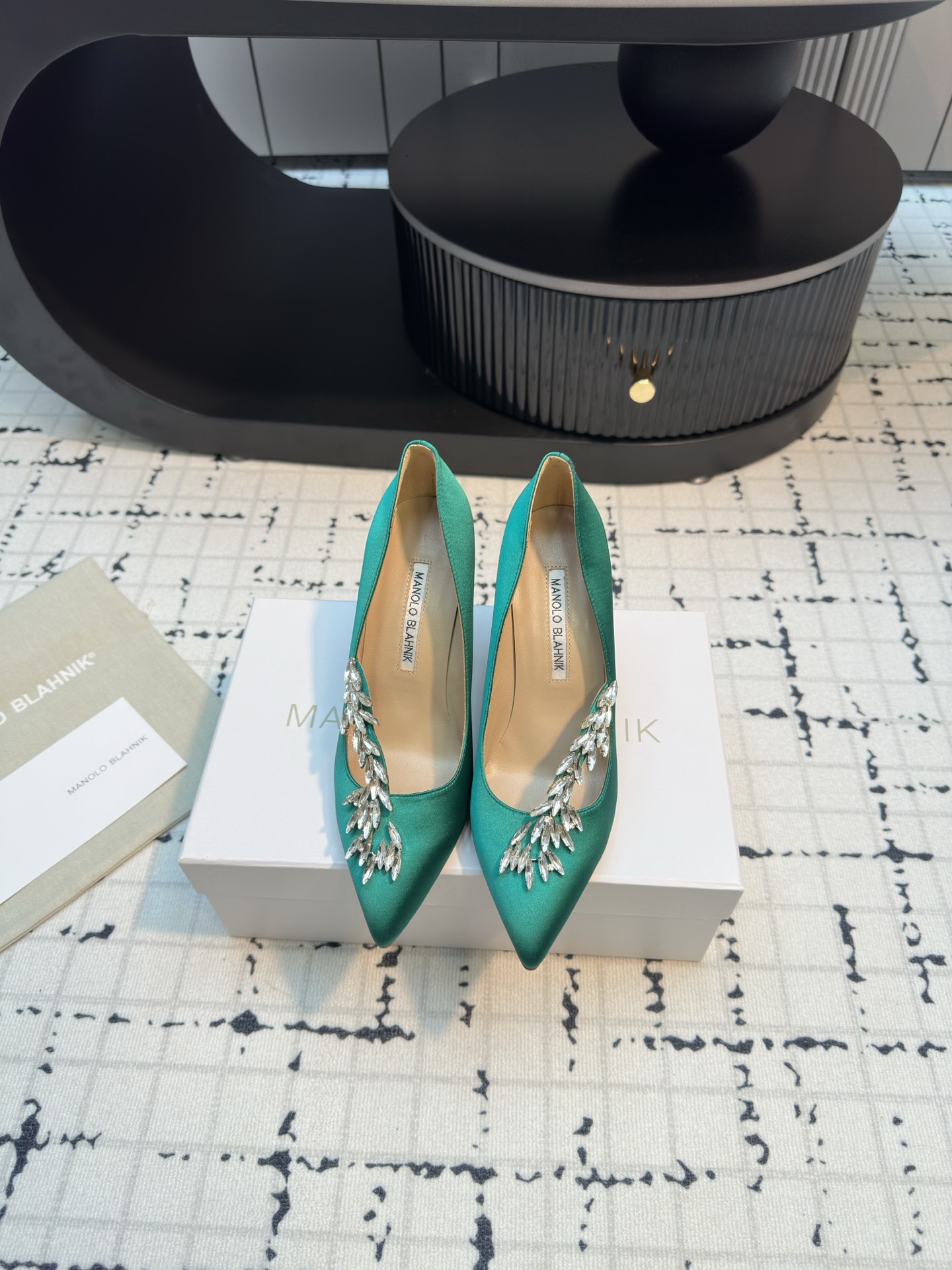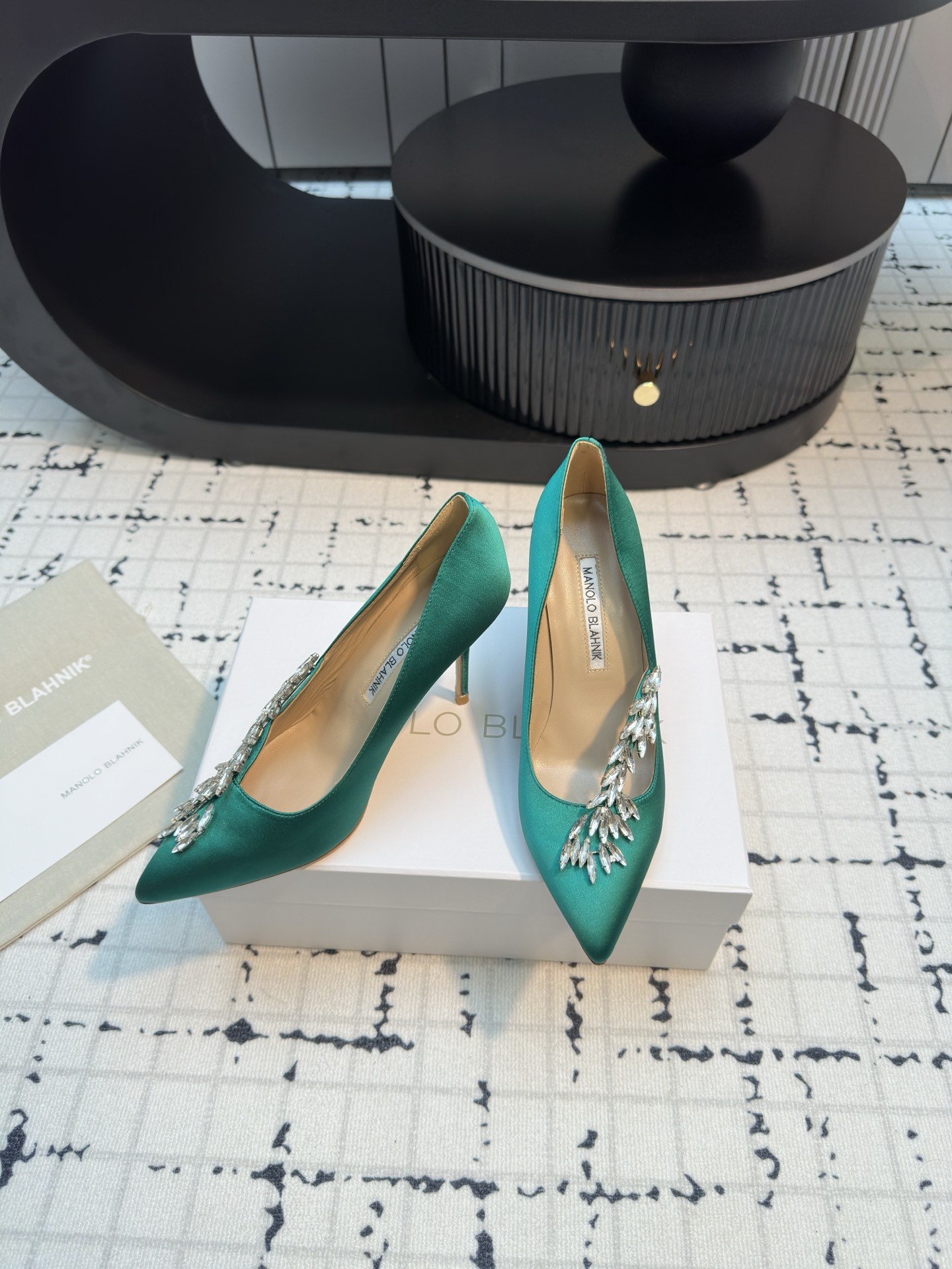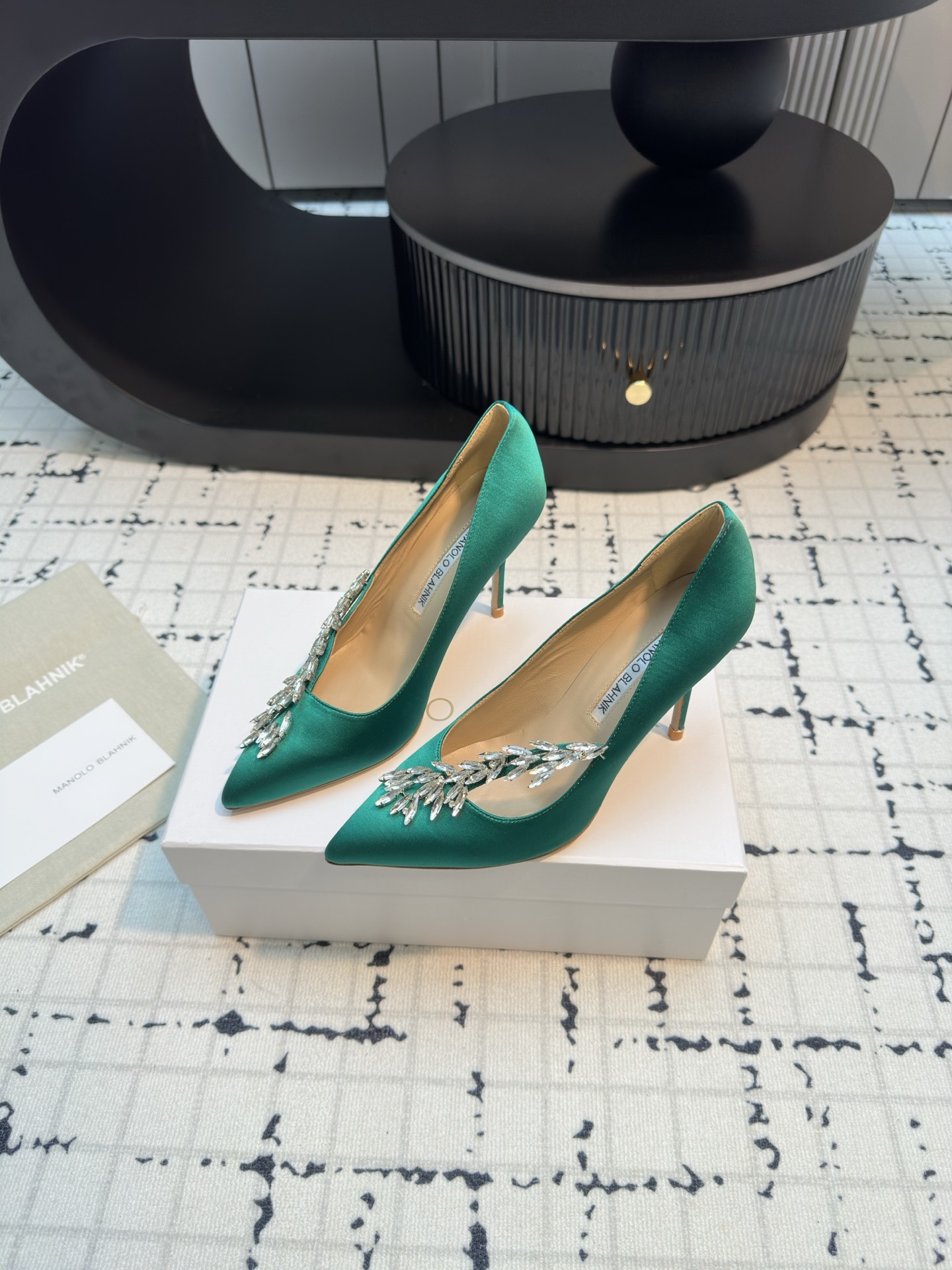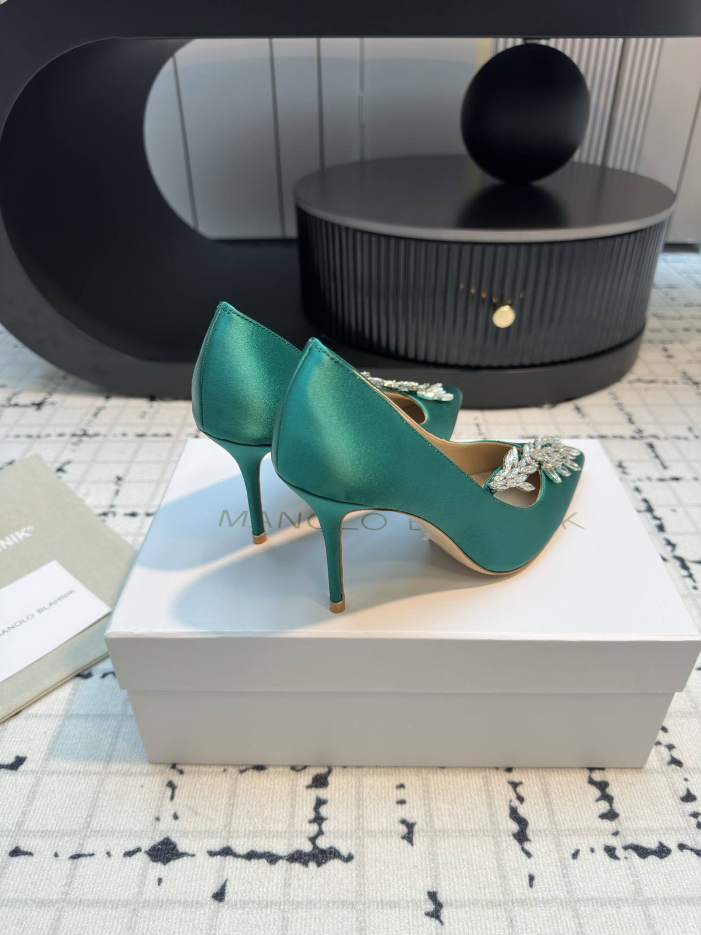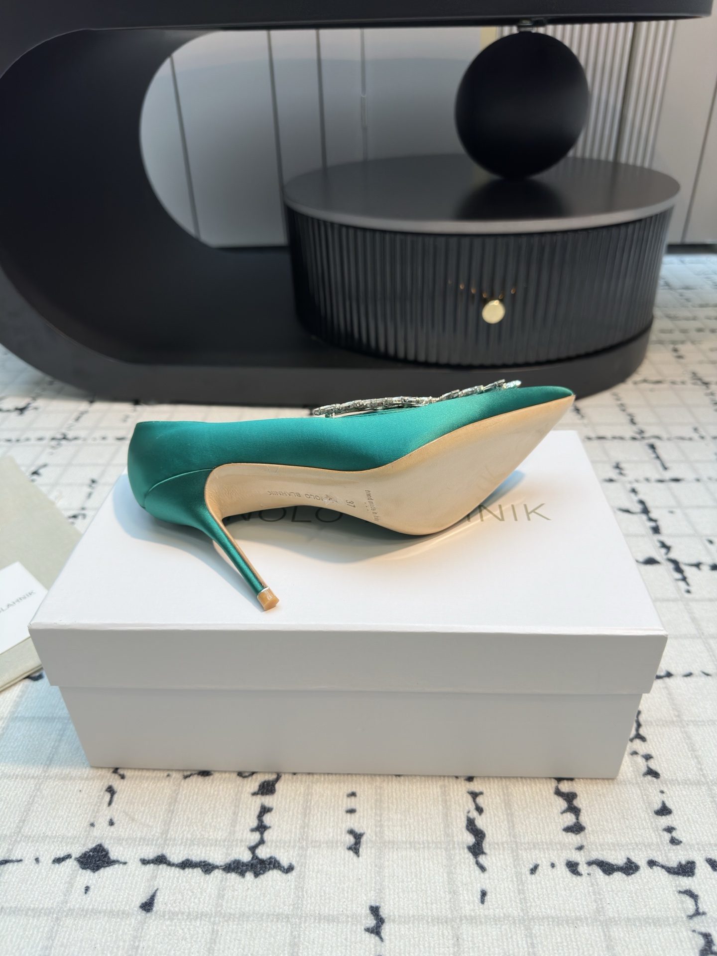 MANOLO BLAHNIK Nadira 90 Satin Pump Green