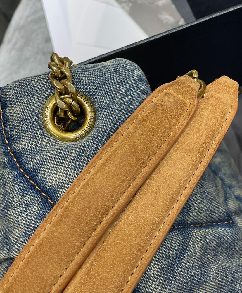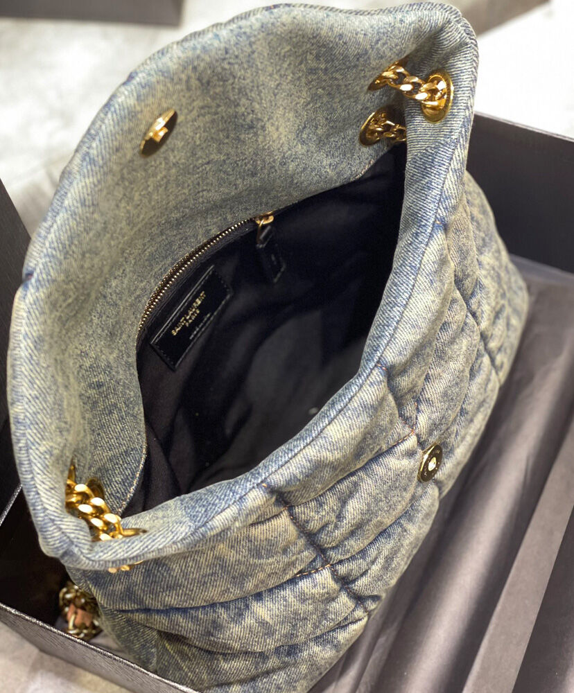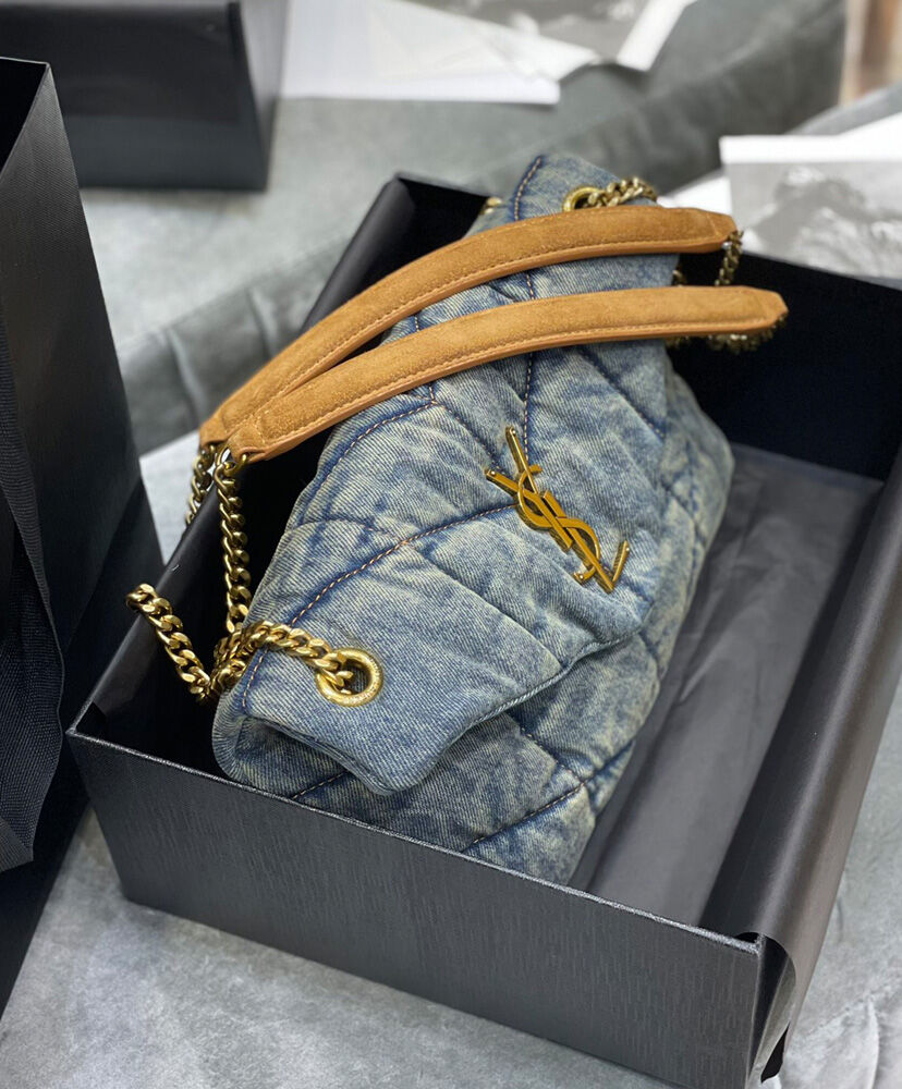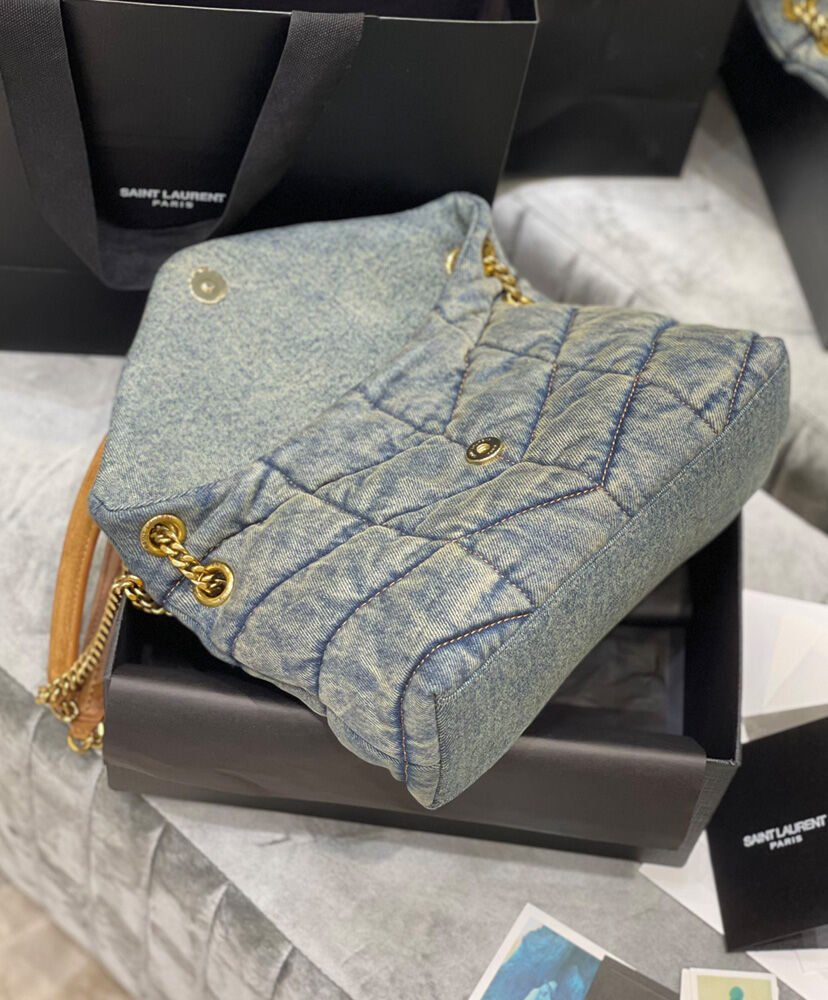 Saint Laurent Puffer Small Bag In Quilted Vintage Denim And Suede 577476 Blue