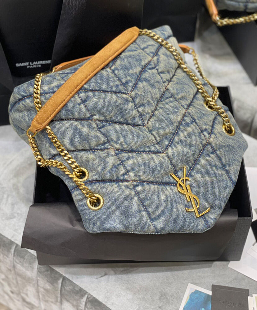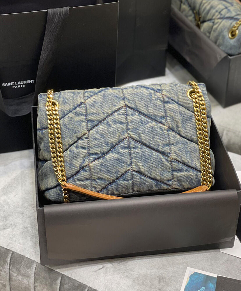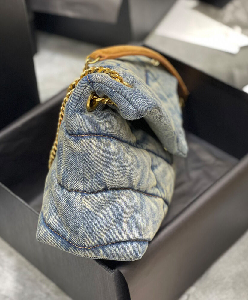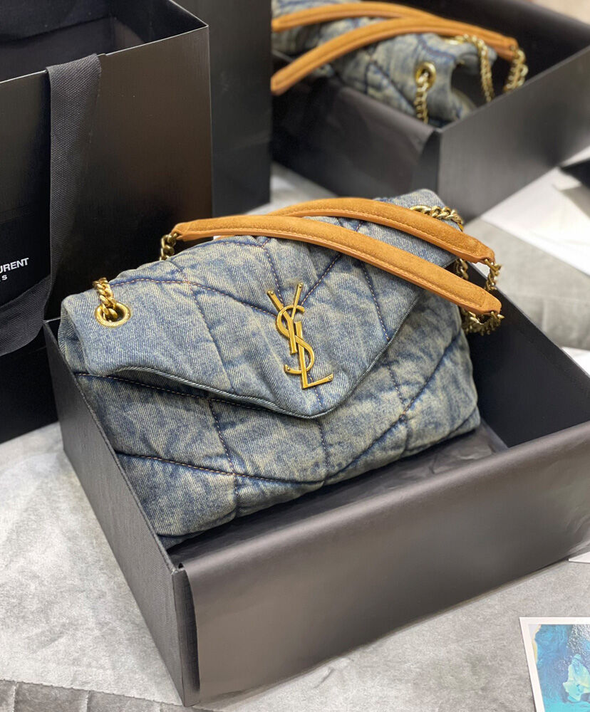Saint Laurent Puffer Small Bag In Quilted Vintage Denim And Suede 577476 Blue