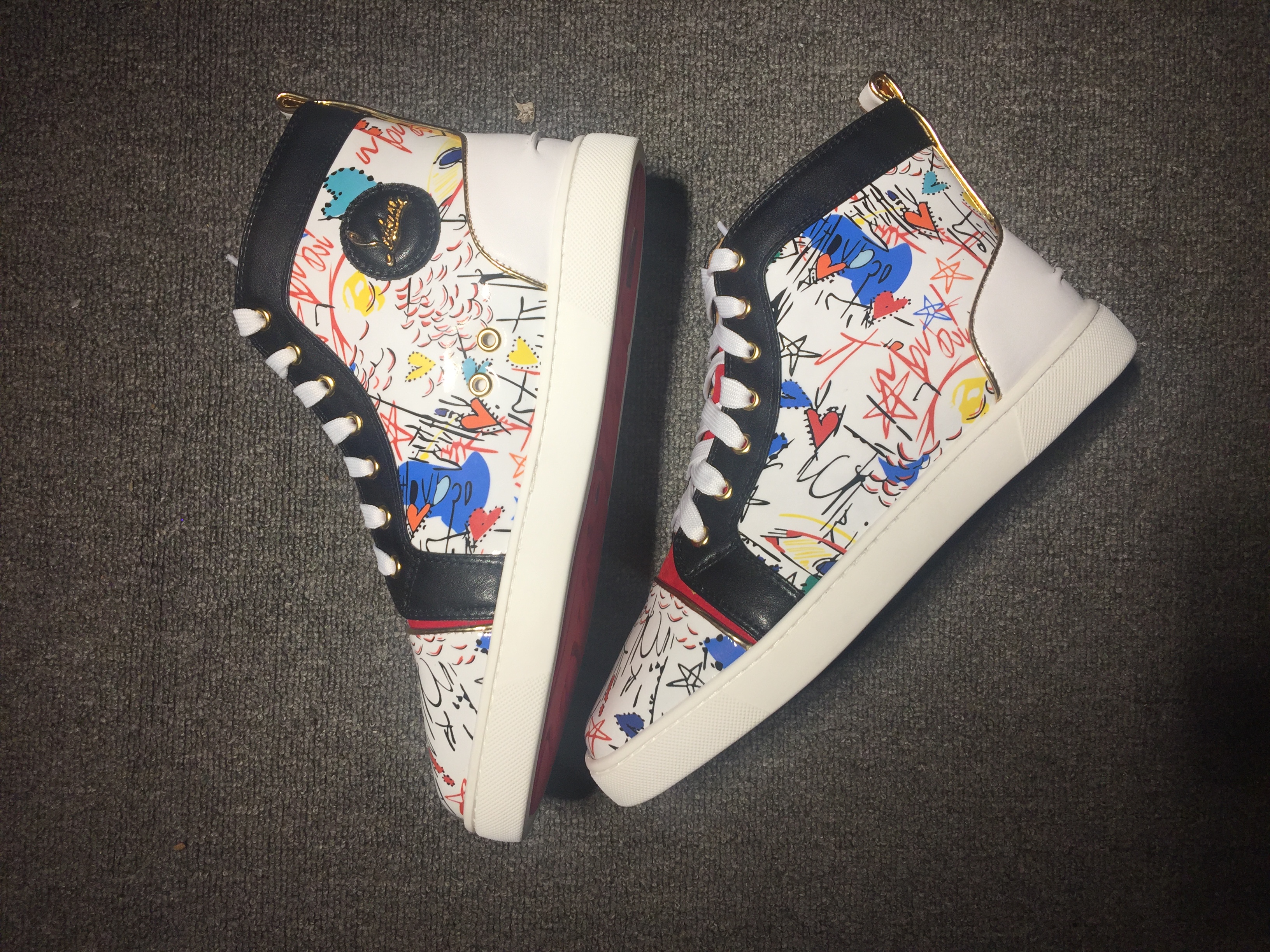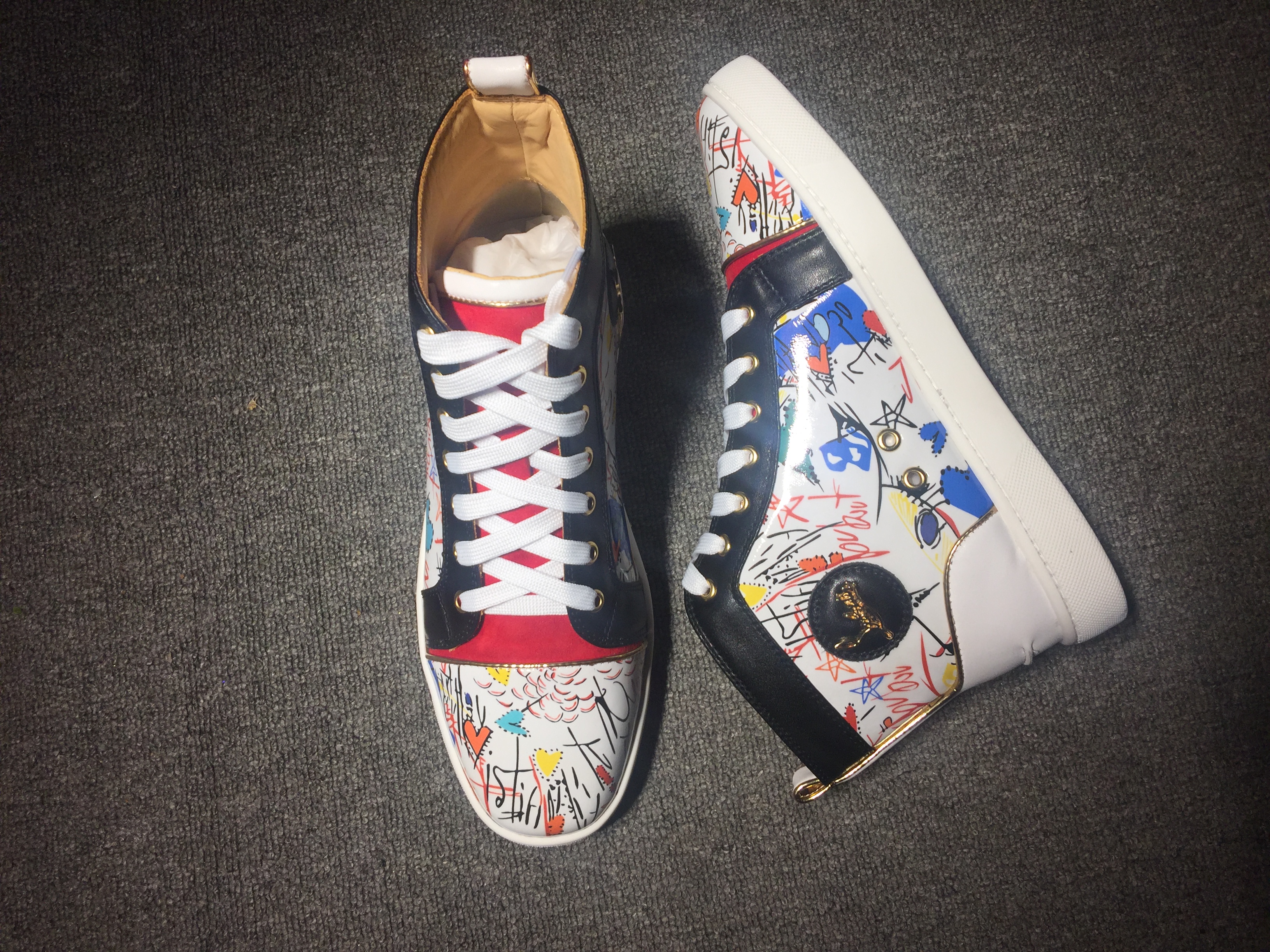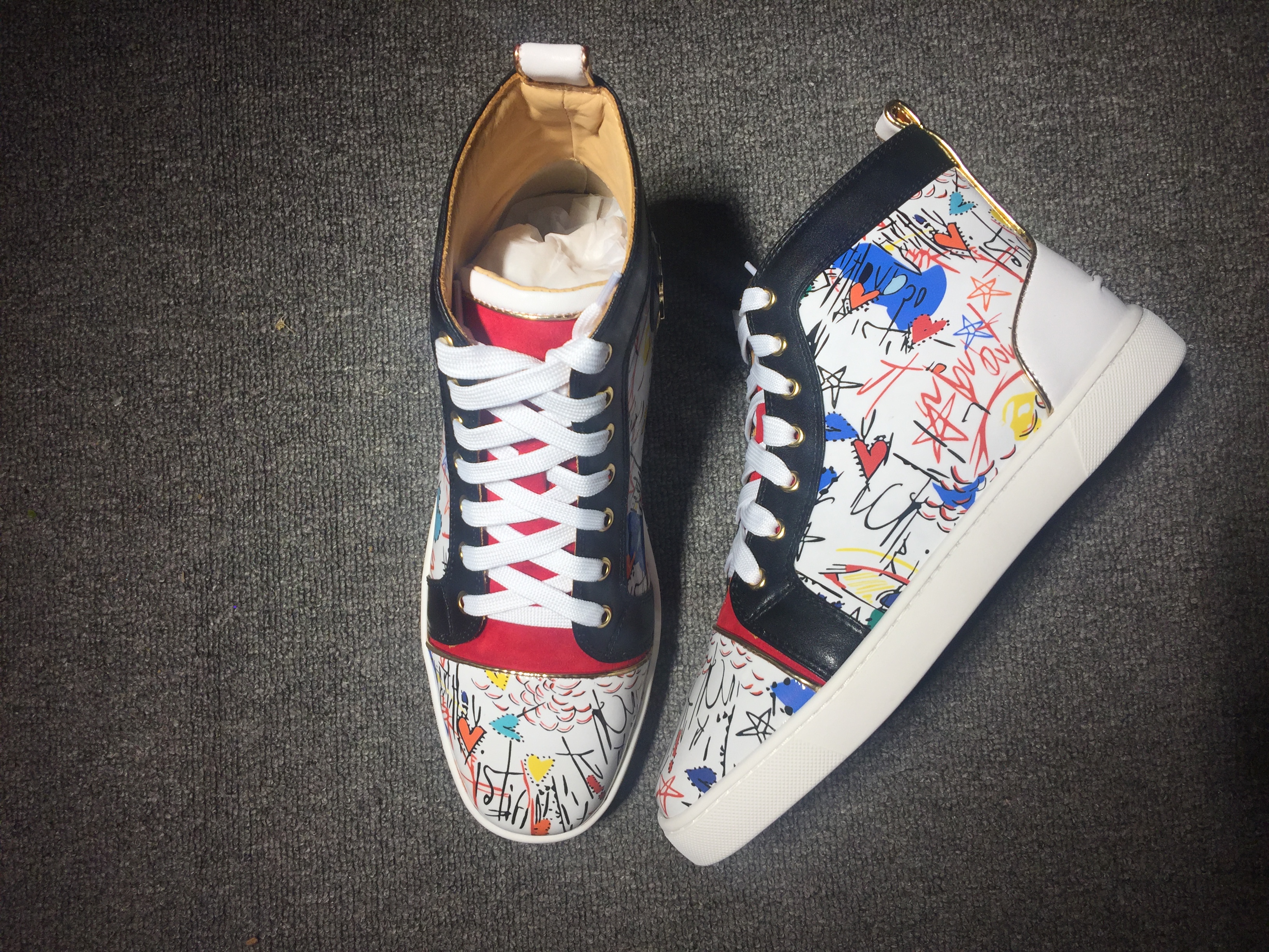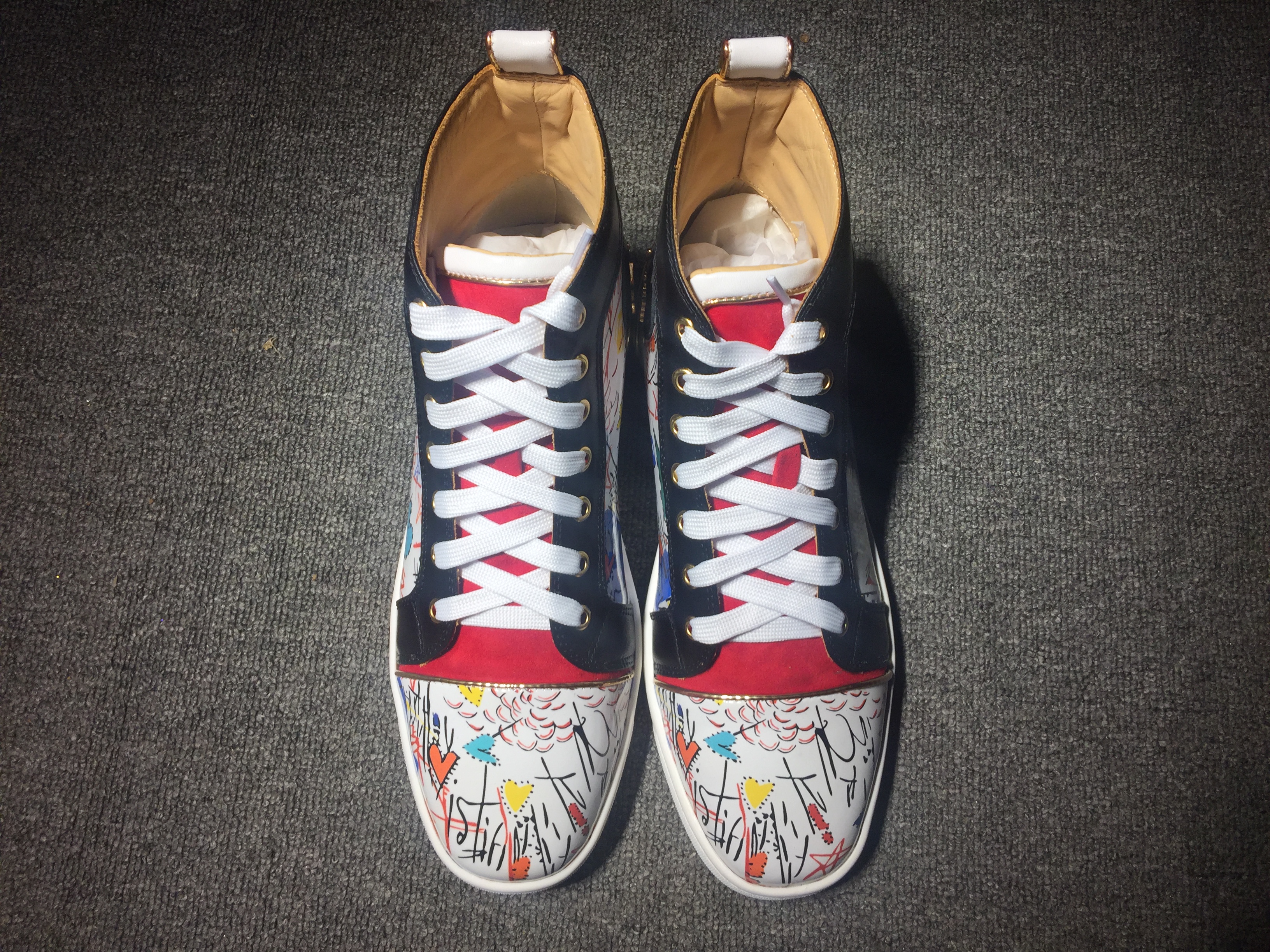 Christian Louboutin White Leather Graffiti High Top Flats Men Sneakers