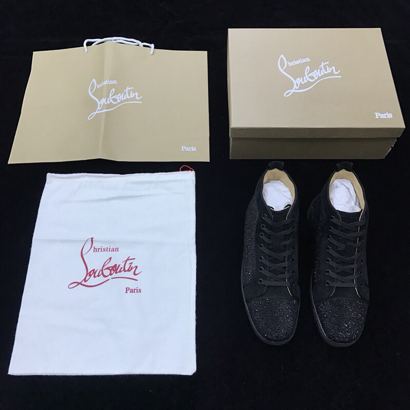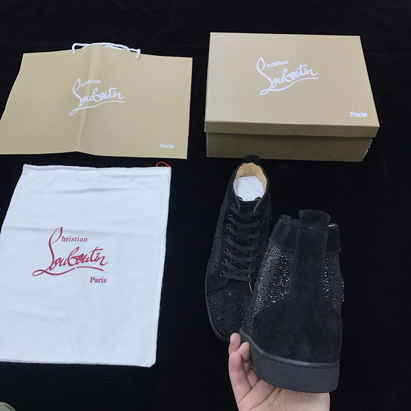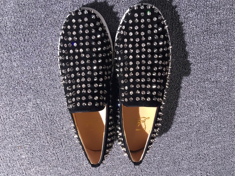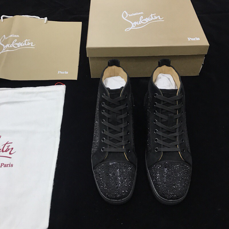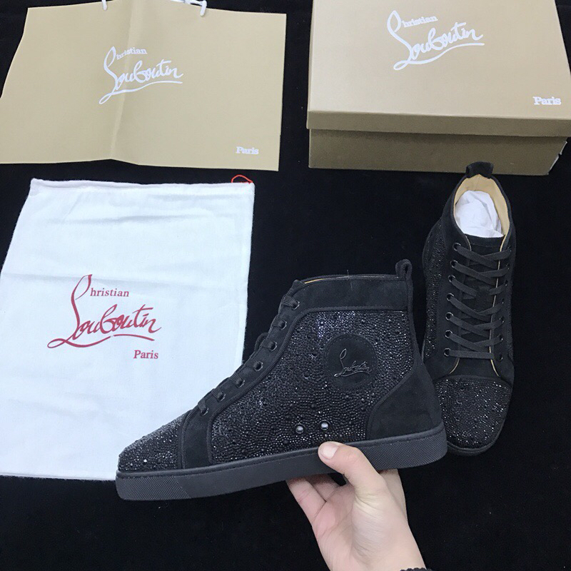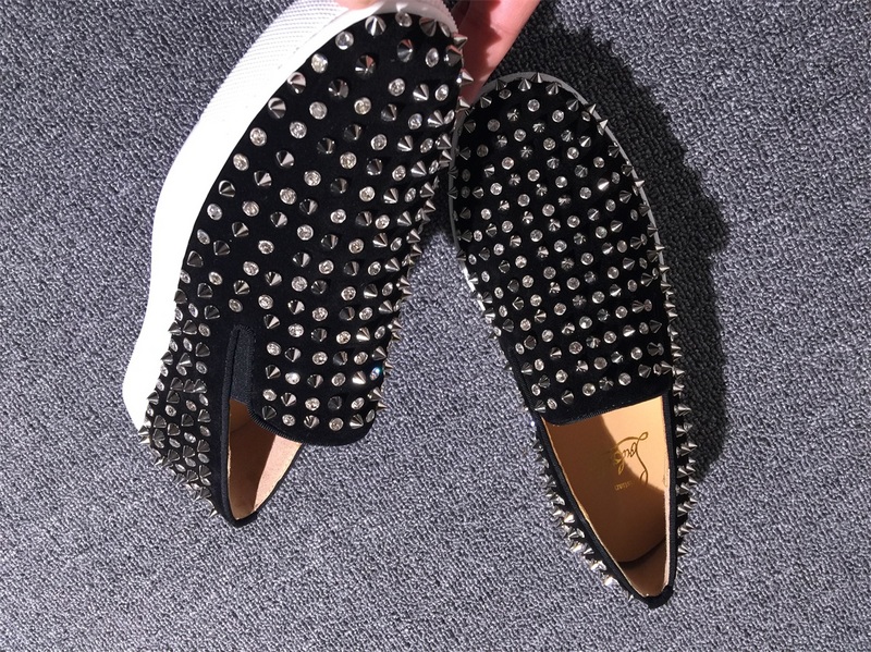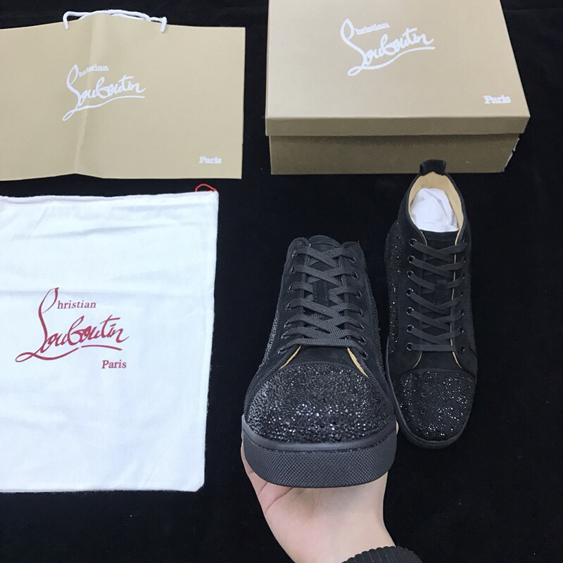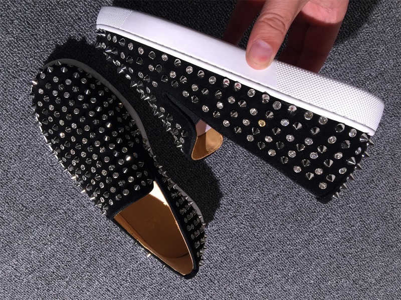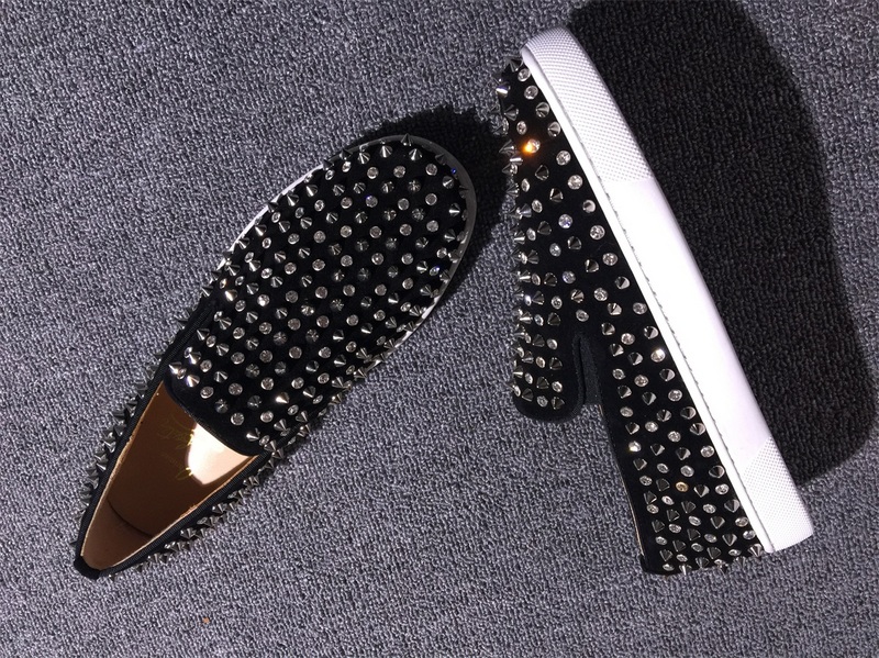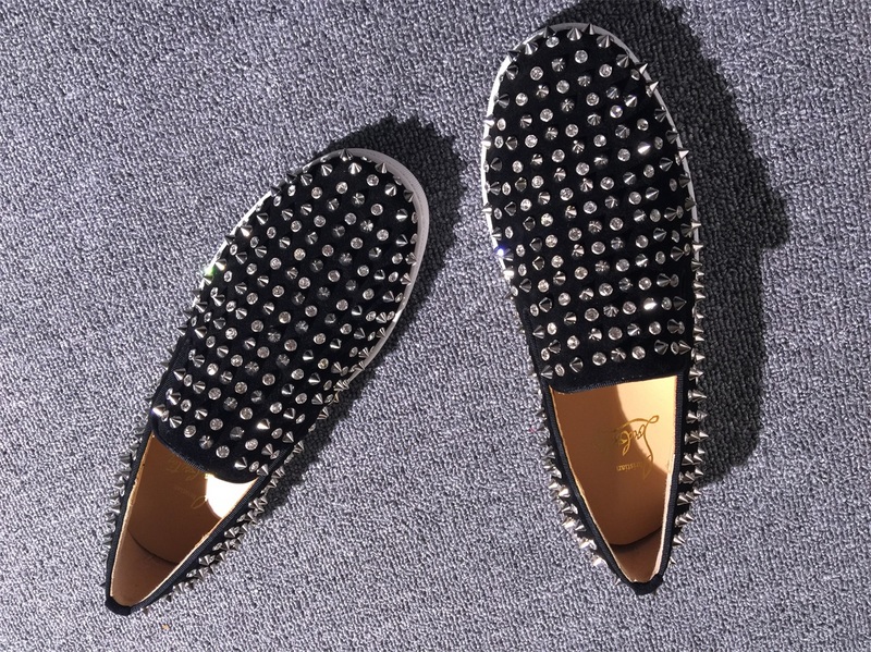 Louboutins Men Christian Louboutin Flat Black Strass Black Men Shoes