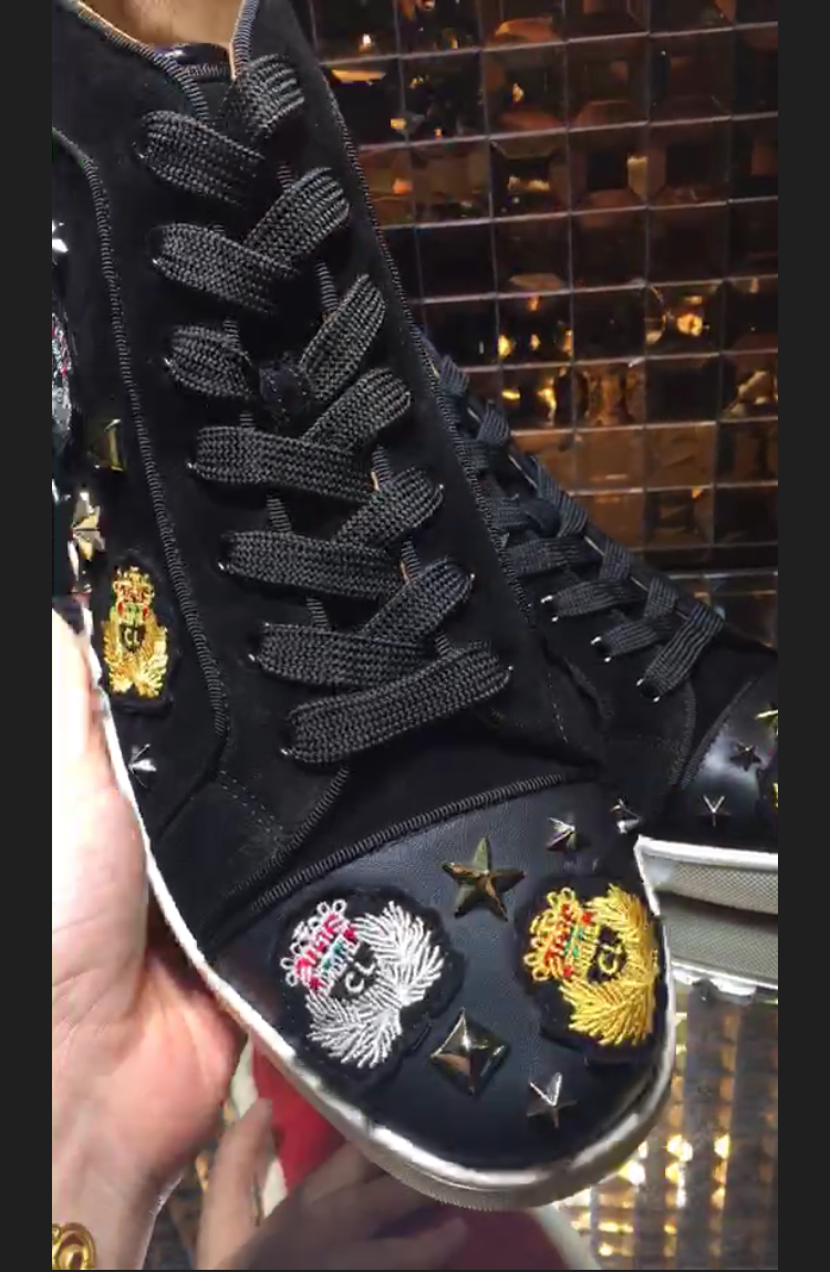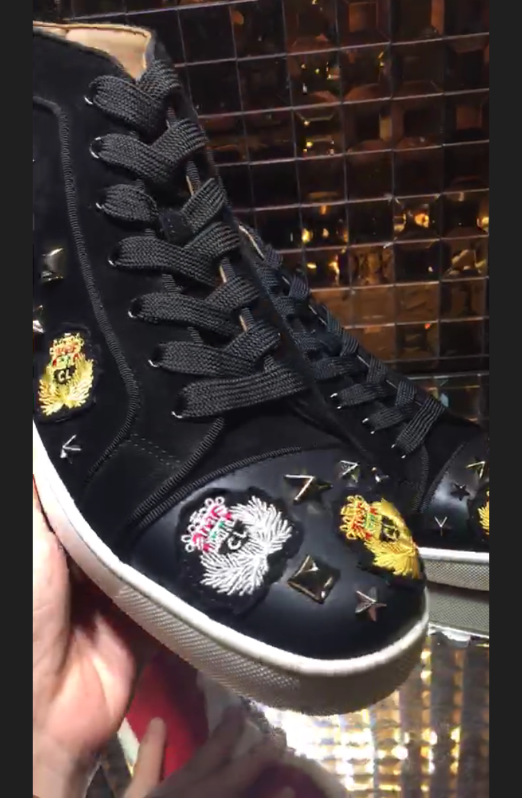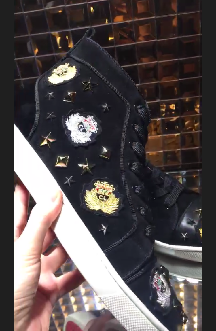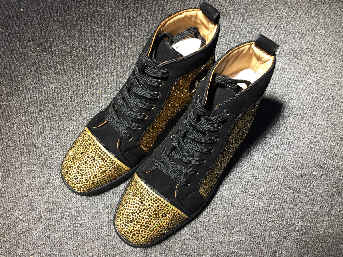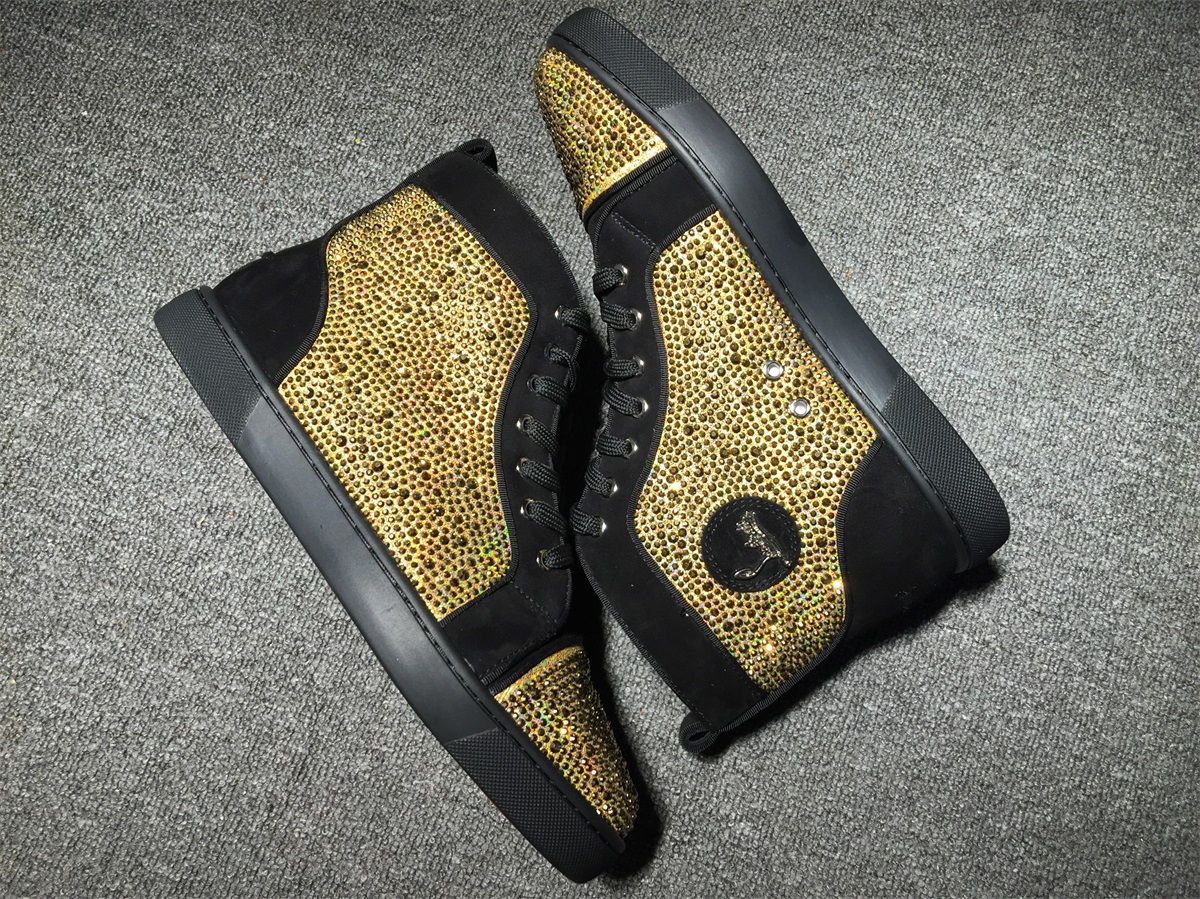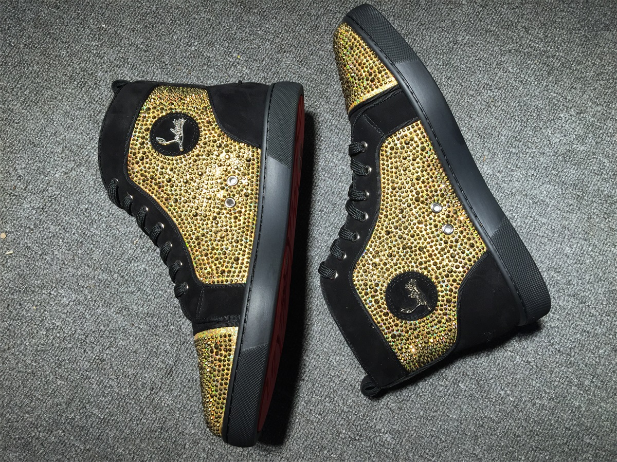 Louboutins Men Christian Louboutin Flat Black Strass Black Men Shoes