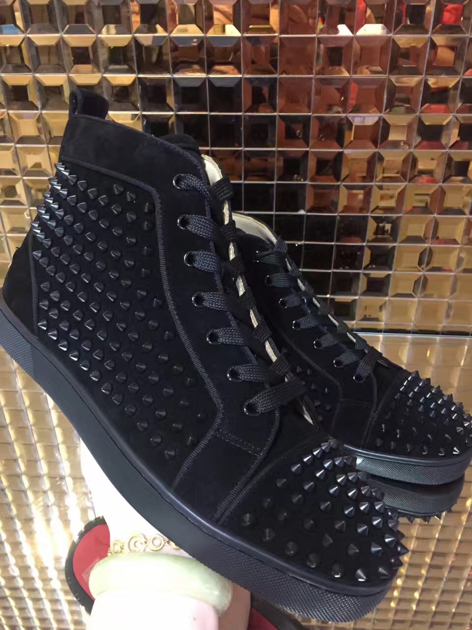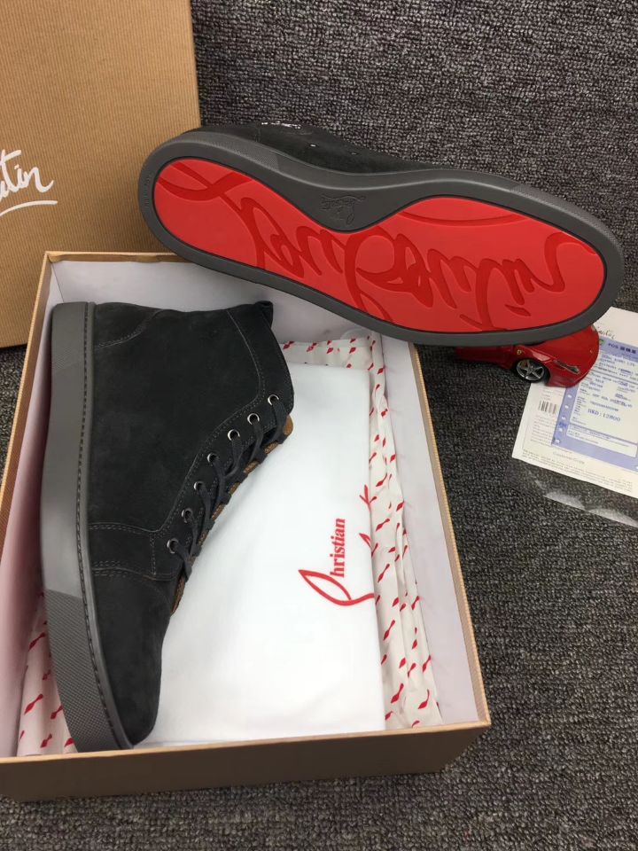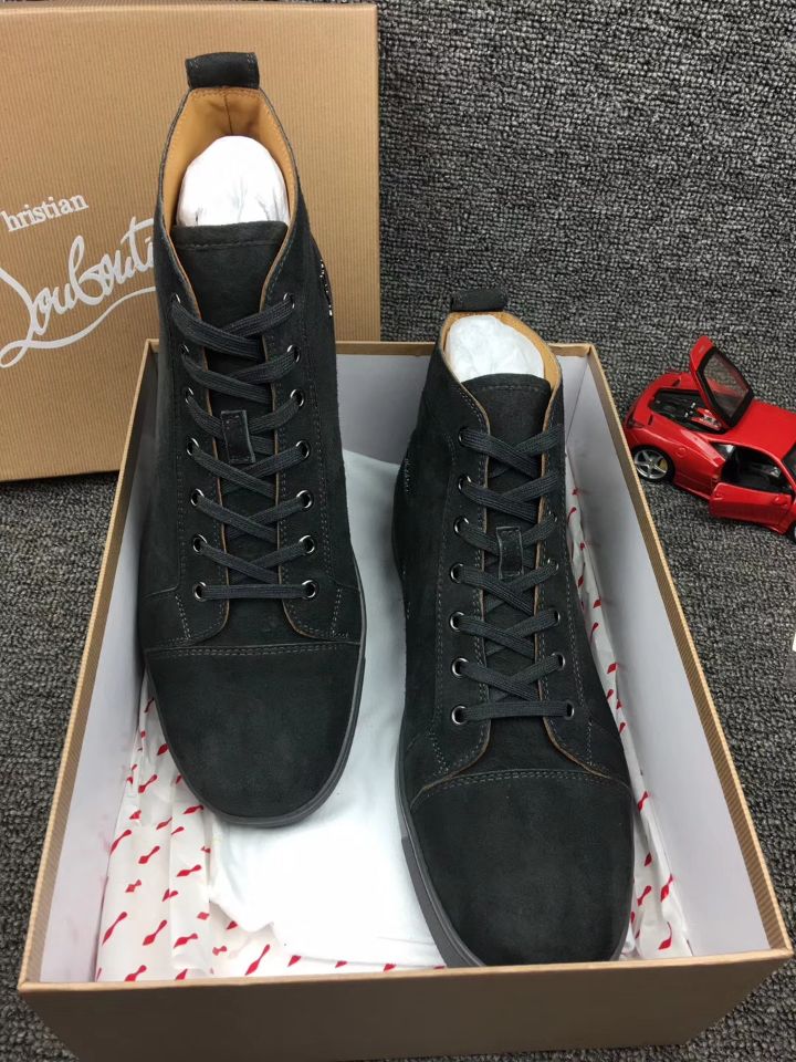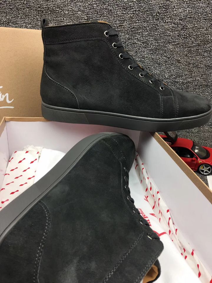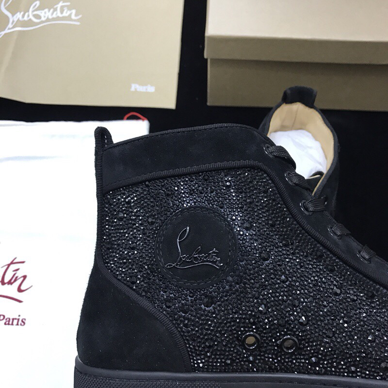 Christian Louboutin Black Leather With CL Badge High Top Flats Men Sneakers