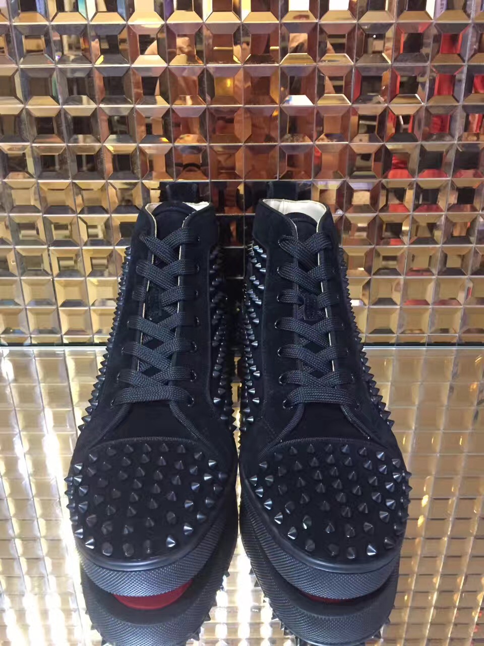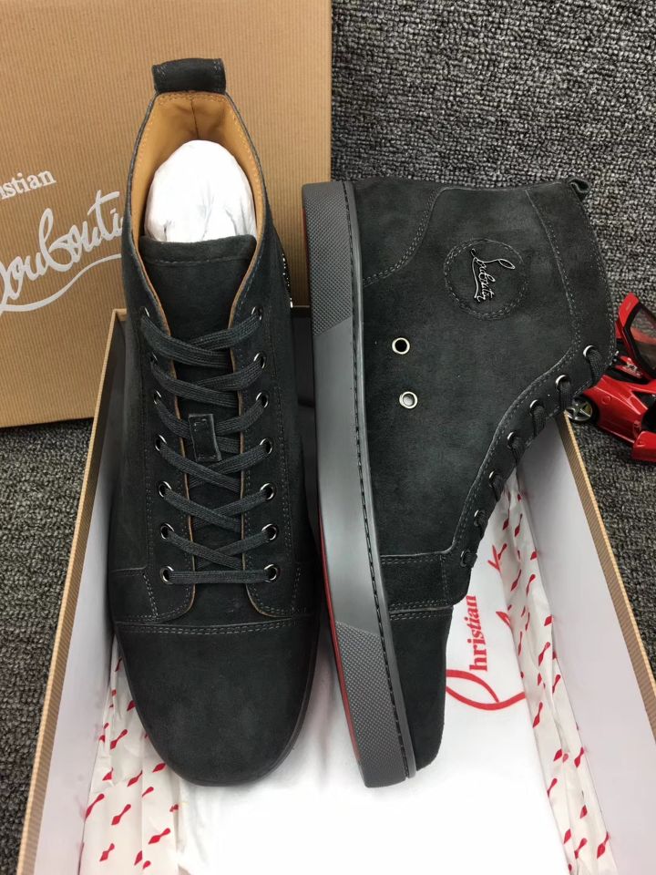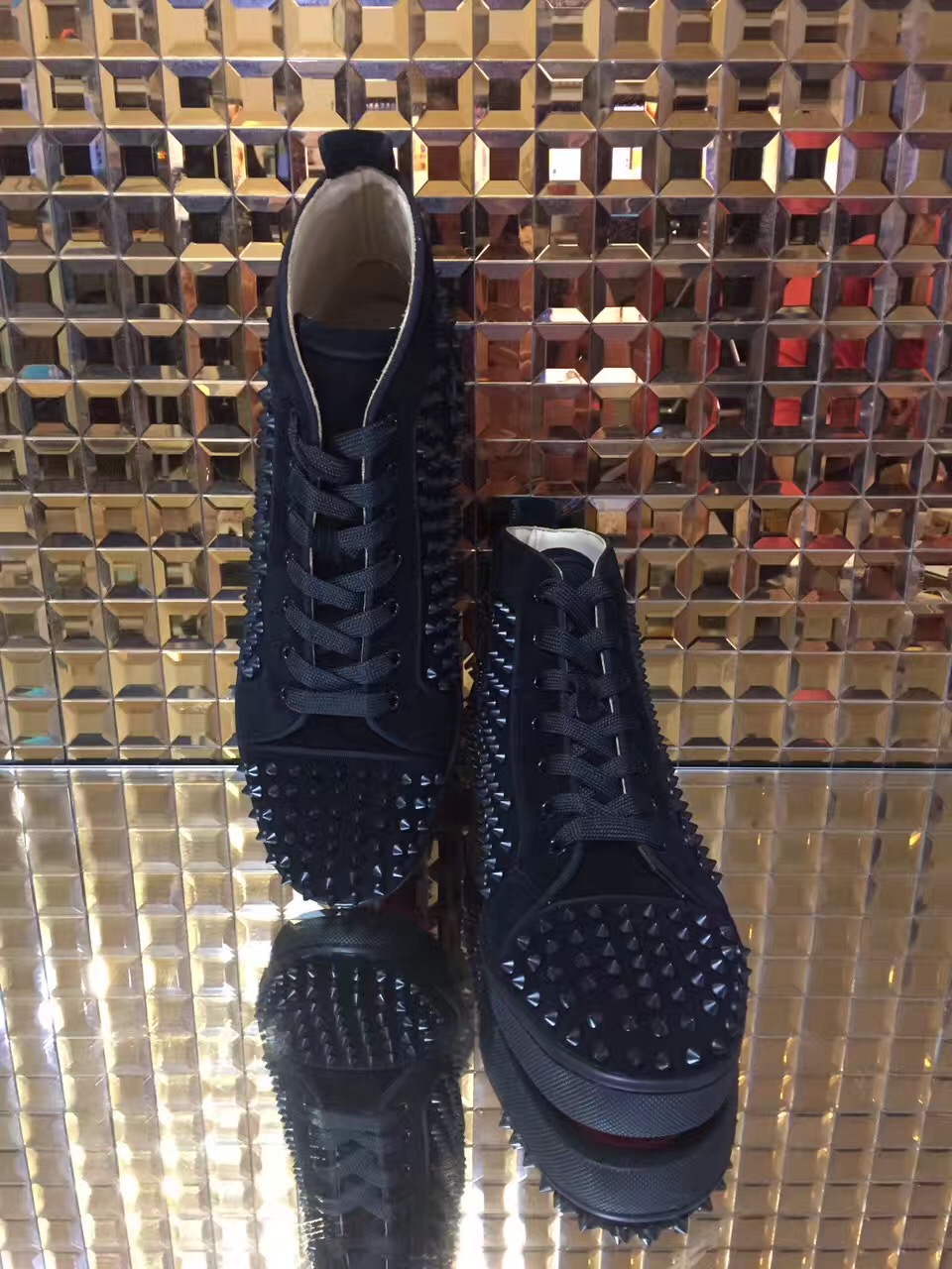 Christian Louboutin Black Leather With CL Badge High Top Flats Men Sneakers