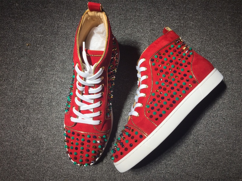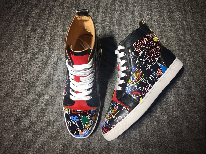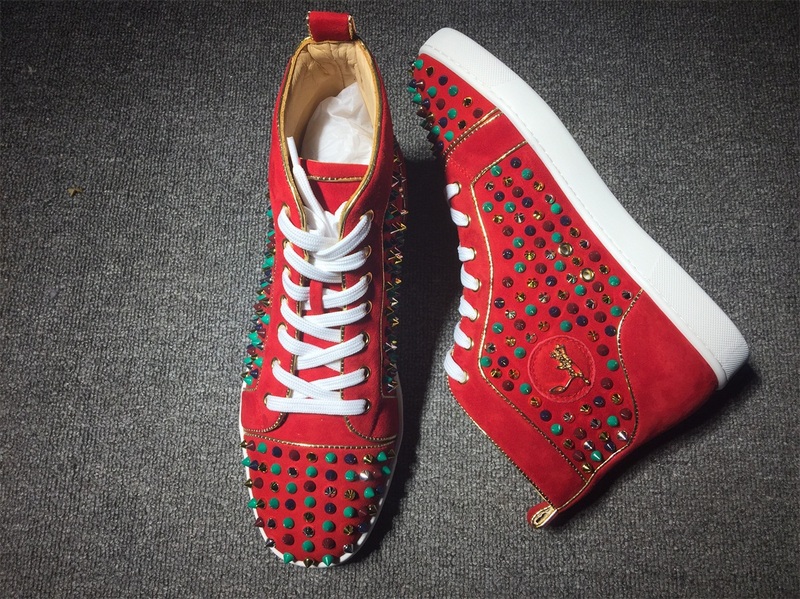 red bottom boots for men Christian Louboutin leopard print High Top Sneakers