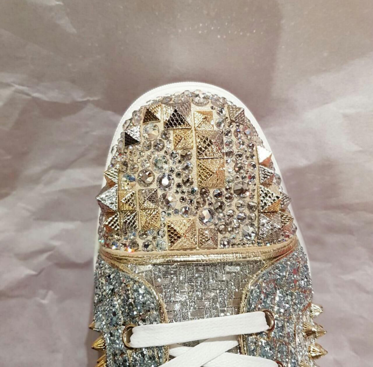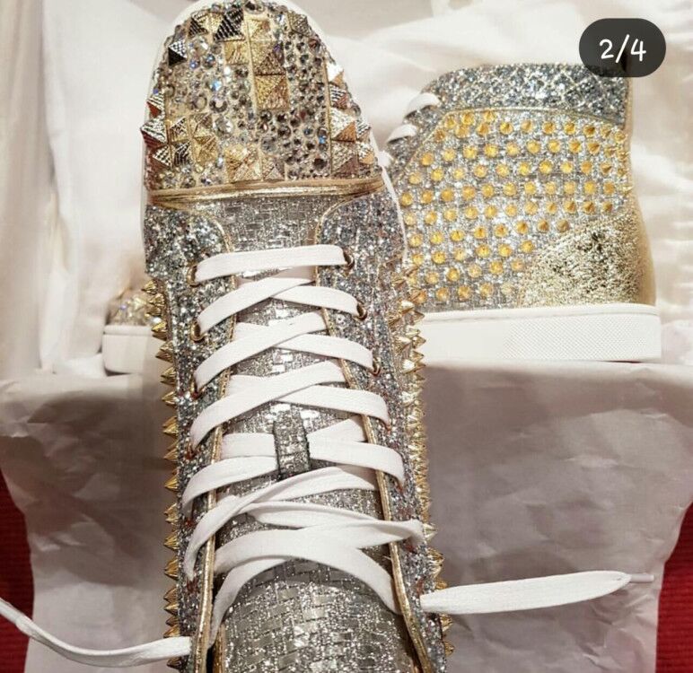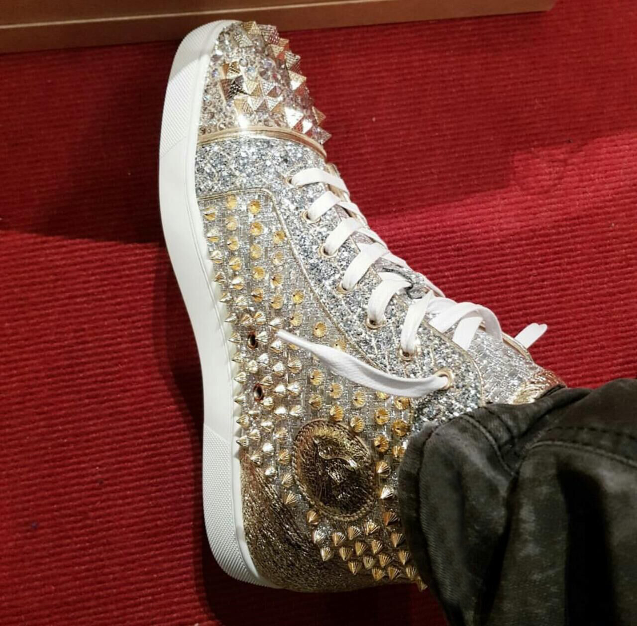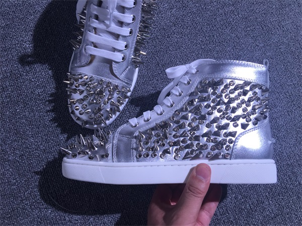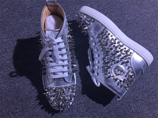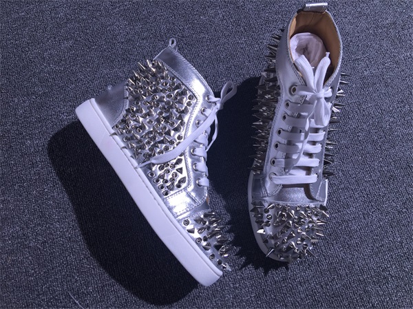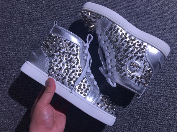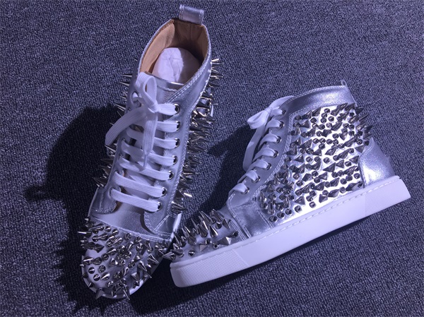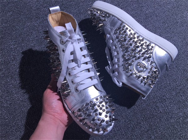 Christian Louboutin Silver High Top Pik Pik Spikes Flats Men Sneakers