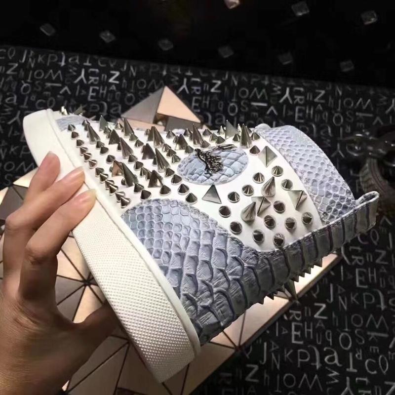 Christian Louboutin White Python High Top Pik Pik Spikes Flats Men Sneakers