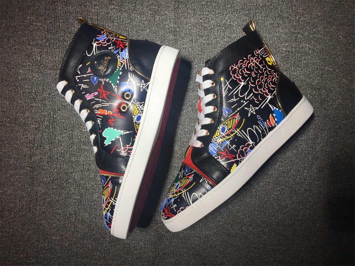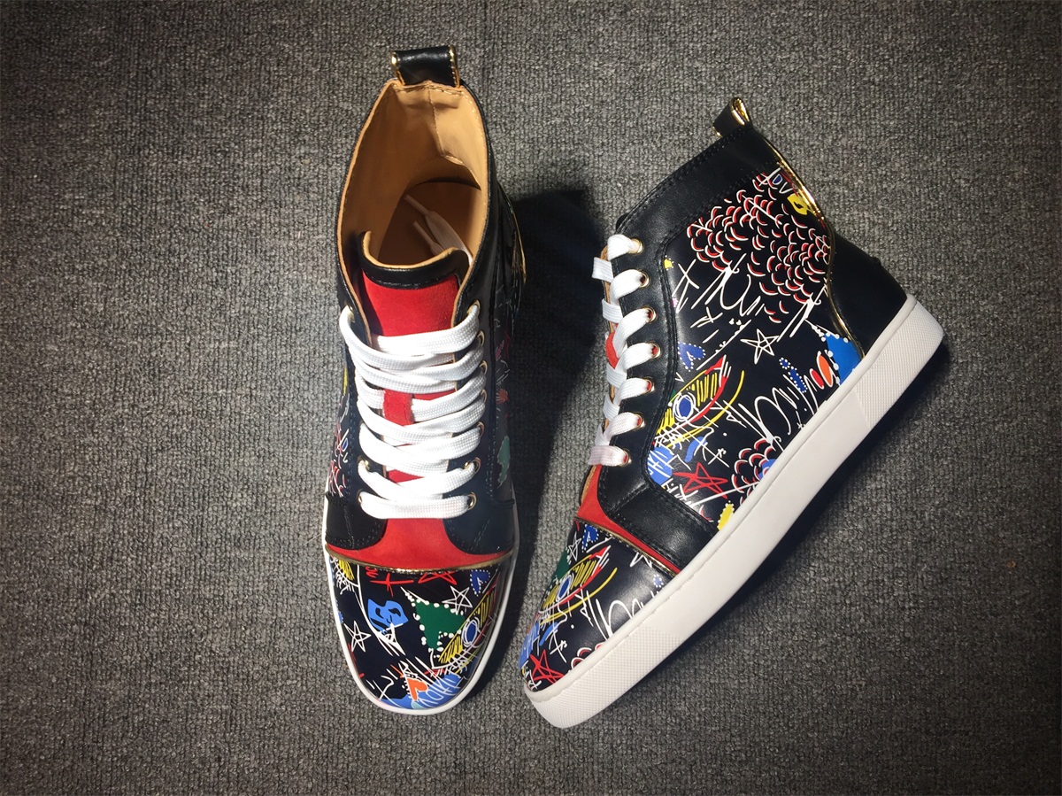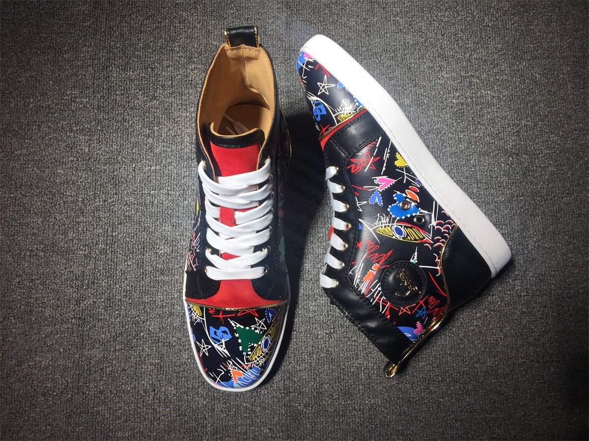 Christian Louboutin Black Leather Graffiti High Top Flats Men Sneakers