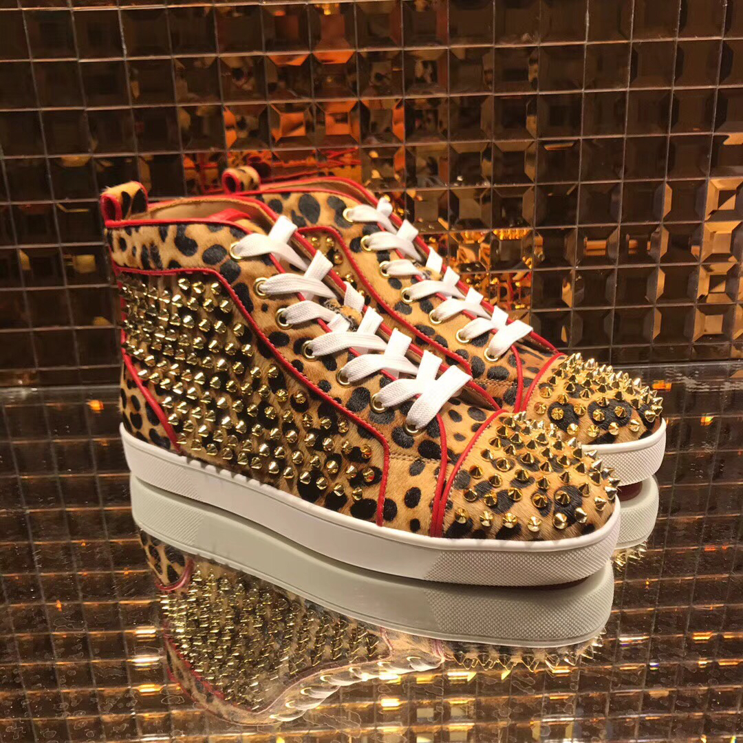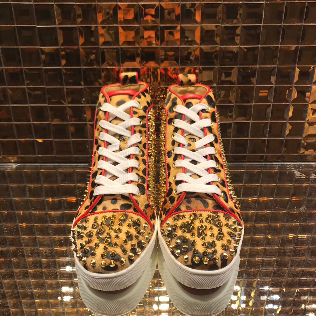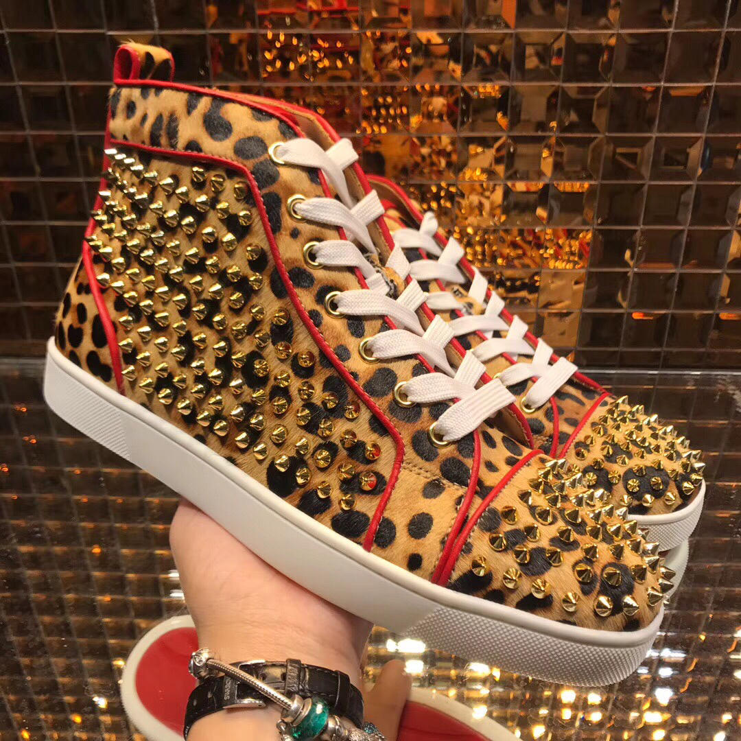 Christian Louboutin High Top Leopard Print With Spikes Flats Men Sneakers