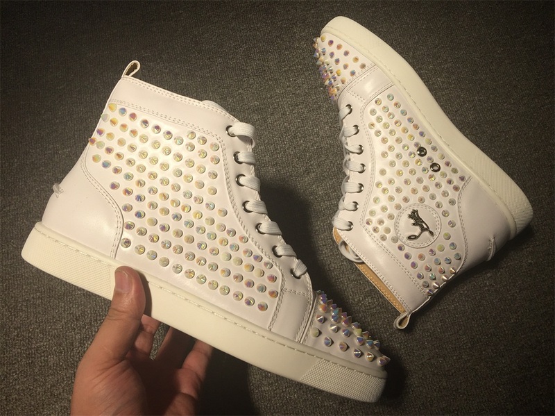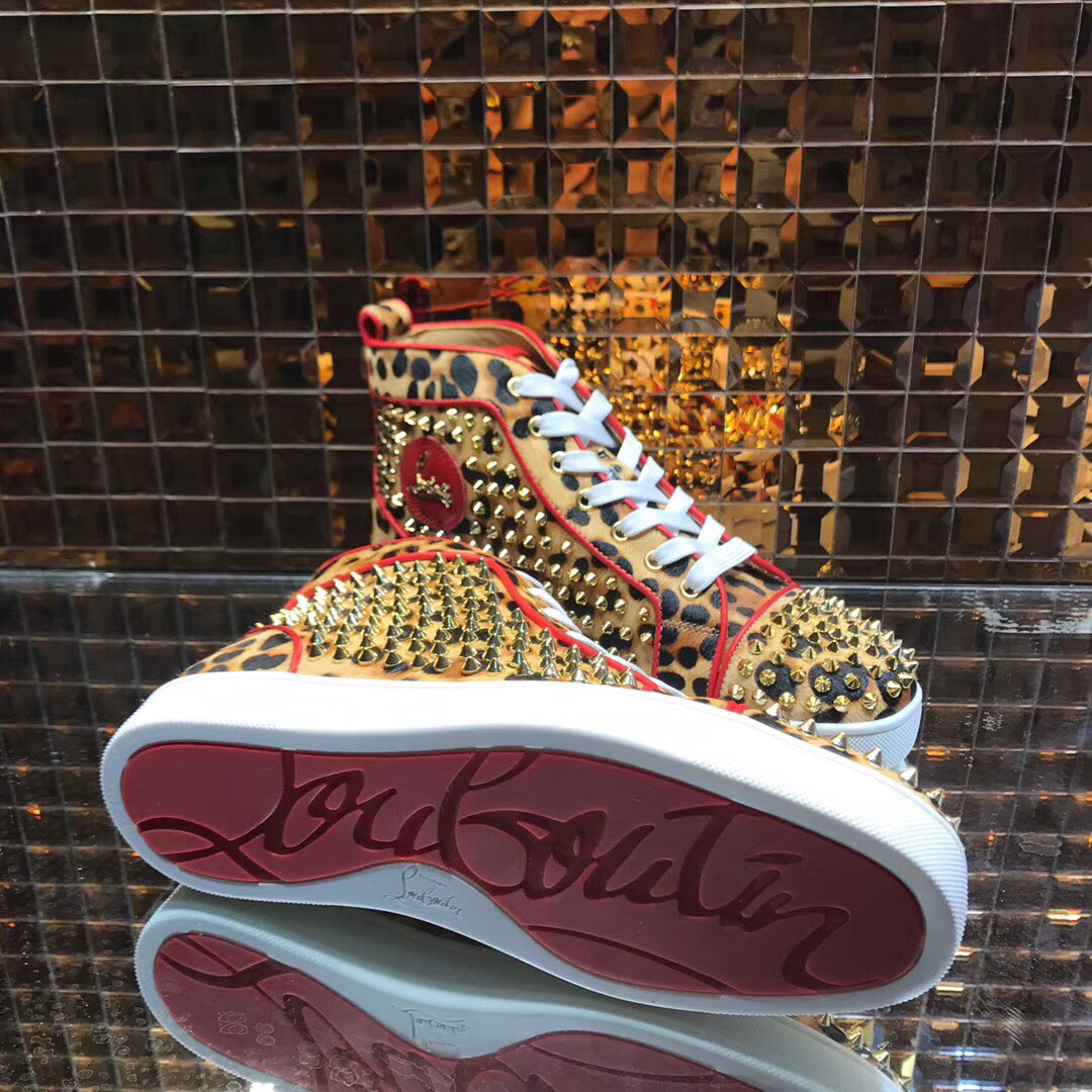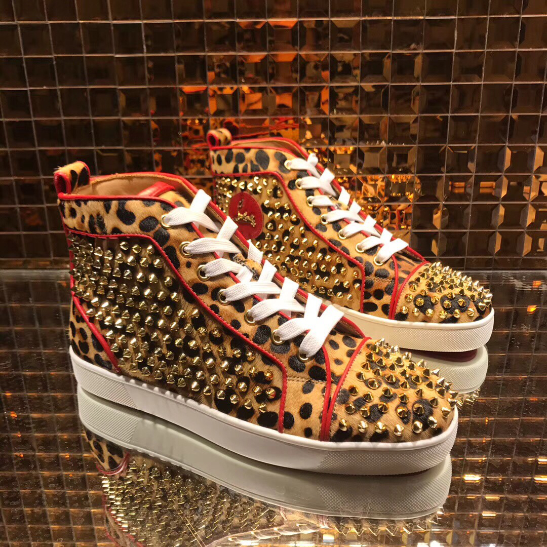 Christian Louboutin High Top Leopard Print With Spikes Flats Men Sneakers